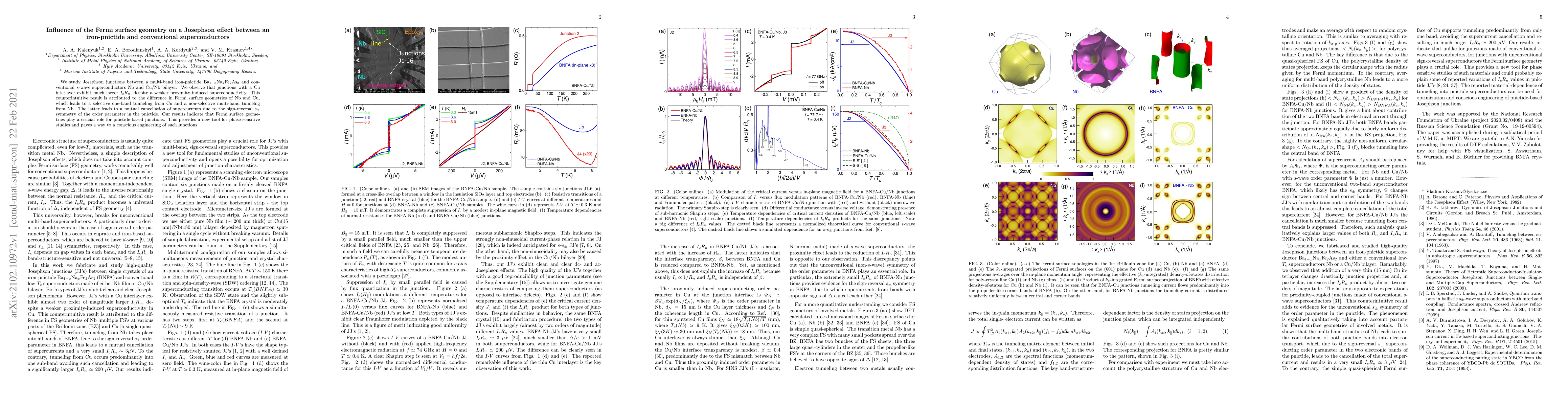 This study investigates Josephson junctions between iron-pnictide Ba1-xNaxFe2As2 and conventional superconductors, finding that Cu interlayers yield larger critical current despite weaker superconductivity. The result is due to selective one-band tunneling from Cu versus non-selective multi-band tunneling from Nb, influenced by the Fermi surface geometries.