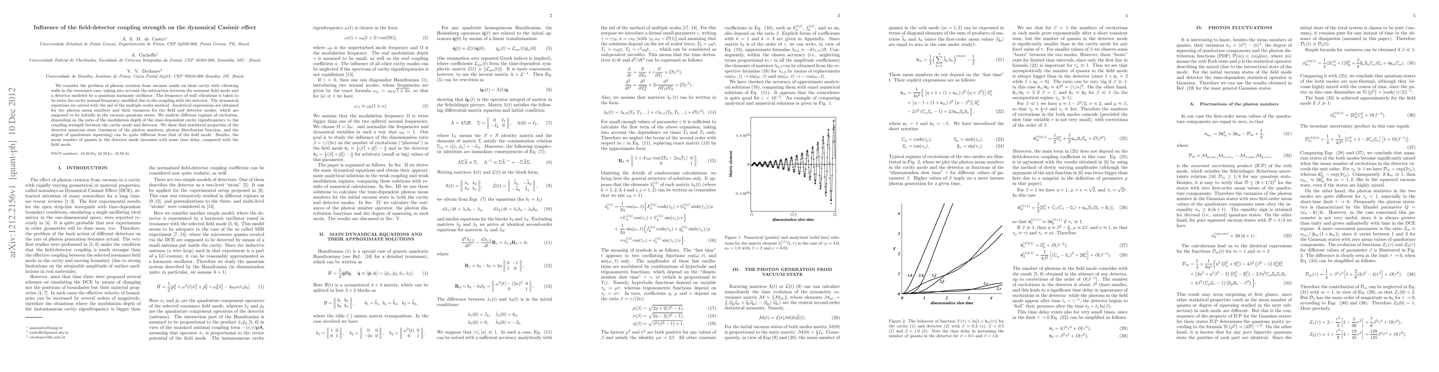This paper investigates the dynamical Casimir effect in a cavity with vibrating walls, focusing on the influence of the coupling strength between the cavity mode and a detector modeled as a quantum harmonic oscillator. Analytical expressions for photon mean numbers and variances reveal distinct statistical properties between the field and detector modes, with the detector's mean quanta number increasing with a time delay.