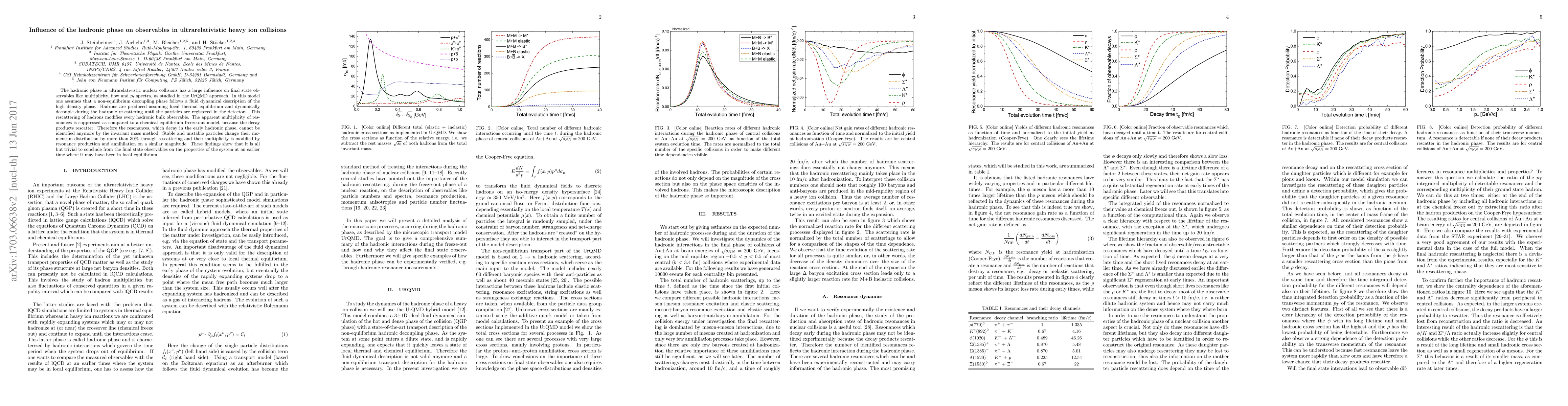 This study reveals that the hadronic phase significantly influences final state observables in ultrarelativistic heavy ion collisions, with rescattering altering multiplicity, flow, and $p_t$ spectra. The UrQMD model shows that resonance suppression and momentum redistribution due to rescattering complicate the interpretation of these observables in terms of earlier equilibrium states.