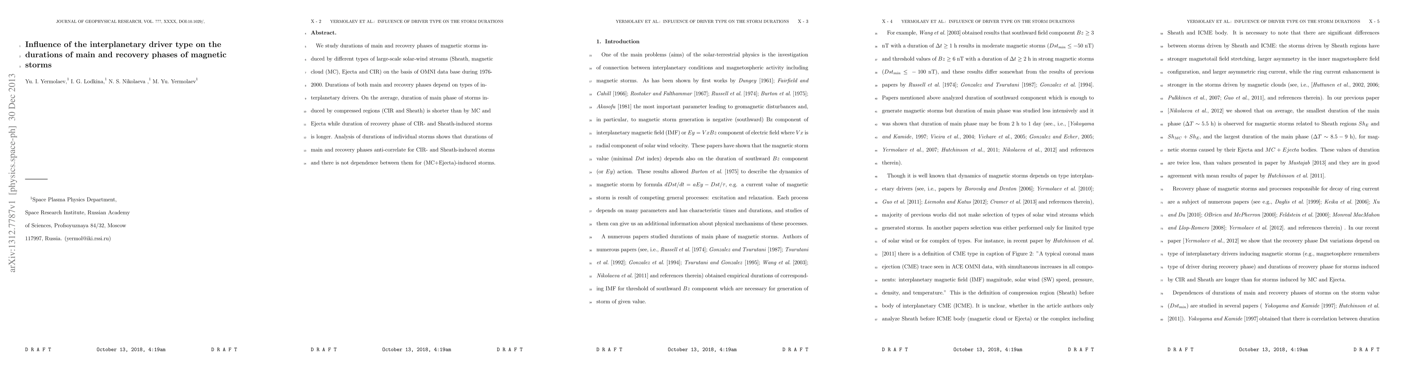This study investigates how different types of interplanetary drivers (Sheath, magnetic cloud, ejecta, and CIR) affect the durations of magnetic storm phases using OMNI data from 1976-2000. It finds that compressed regions (CIR and Sheath) induce shorter main phases but longer recovery phases compared to magnetic clouds and ejecta, with distinct anti-correlation between main and recovery phases for CIR- and Sheath-induced storms.