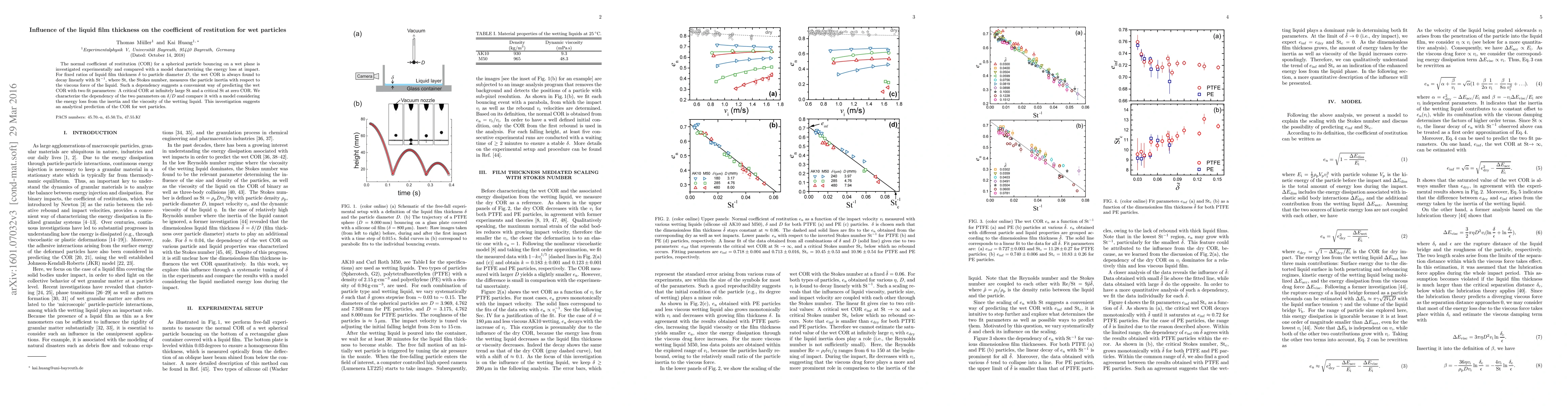 This research extends previous work by considering the influence of liquid film thickness on wet particle rebound, providing a more comprehensive model for predicting the coefficient of restitution in wet granular systems.