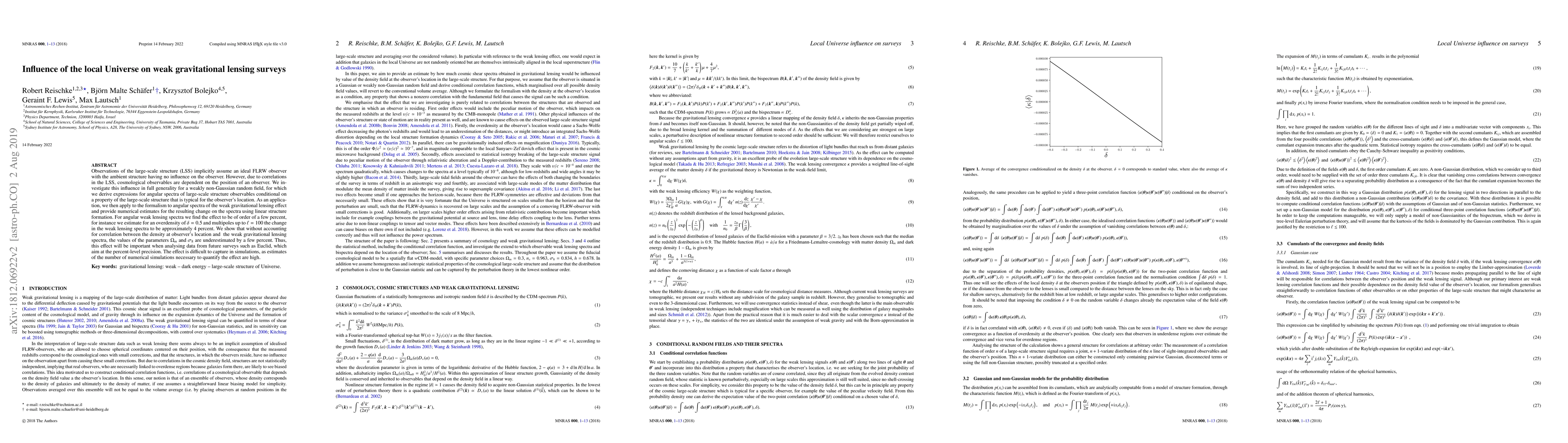 Observations of the large-scale structure (LSS) implicitly assume an ideal FLRW observer with the ambient structure having no influence on the observer. However, due to correlations in the LSS, cosmological observables are dependent on the position of an observer. We investigate this influence in full generality for a weakly non-Gaussian random field, for which we derive expressions for angular spectra of large-scale structure observables conditional on a property of the large-scale structure that is typical for the observer's location. As an application, we then apply to the formalism to angular spectra of the weak gravitational lensing effect and provide numerical estimates for the resulting change on the spectra using linear structure formation. For angular weak lensing spectra we find the effect to be of order of a few percent, for instance we estimate for an overdensity of $\delta =0.5$ and multipoles up to $\ell=100$ the change in the weak lensing spectra to be approximately 4 percent. We show that without accounting for correlation between the density at observer's location and the weak gravitational lensing spectra, the values of the parameters $\Omega_m$ and $\sigma_8$ are underestimated by a few percent. Thus, this effect will be important when analysing data from future surveys such as Euclid, which aim at the percent-level precision. The effect is difficult to capture in simulations, as estimates of the number of numerical simulations necessary to quantify the effect are high.