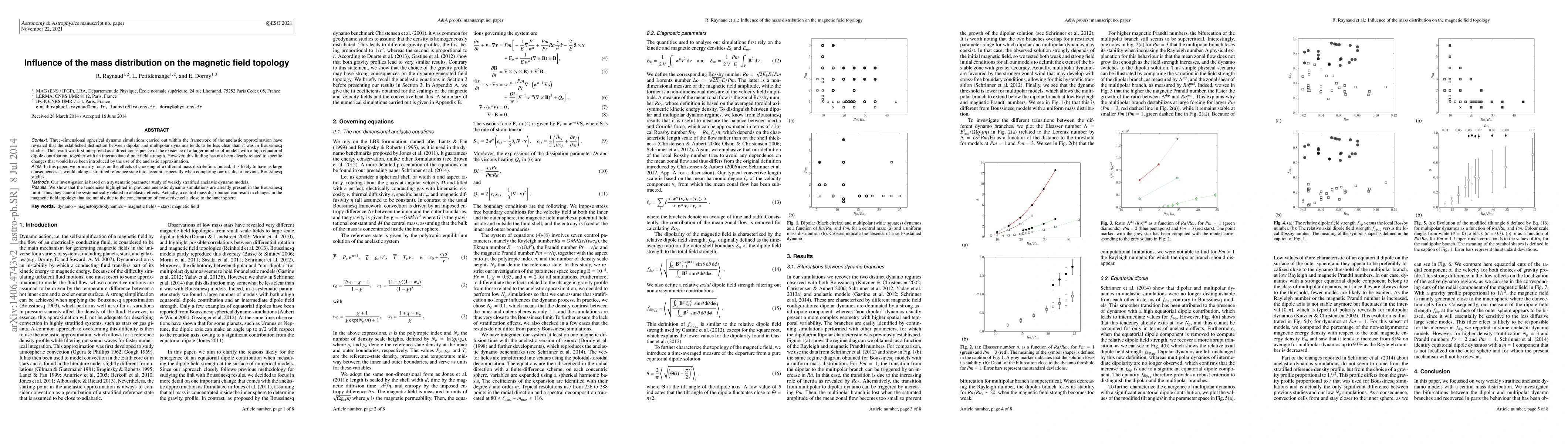 This study explores how mass distribution impacts magnetic field topology in dynamo models. Through a systematic parameter study of weakly stratified anelastic dynamo models, it finds that earlier observed tendencies in anelastic simulations are also present in the simpler Boussinesq limit. This suggests these trends aren't due to anelastic effects, but primarily from concentrated convective cells near the inner sphere, challenging the traditional distinction between dipolar and multipolar dynamos.