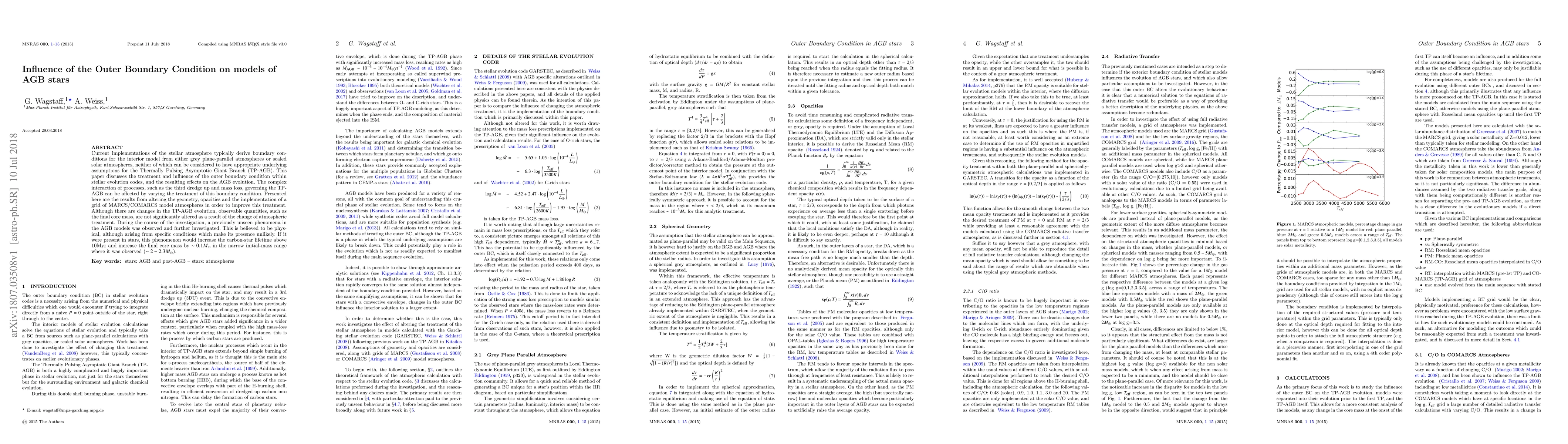Current implementations of the stellar atmosphere typically derive boundary conditions for the interior model from either grey plane-parallel atmospheres or scaled solar atmospheres, neither of which can be considered to have appropriate underlying assumptions for the Thermally Pulsing Asymptotic Giant Branch (TP-AGB). This paper discusses the treatment and influence of the outer boundary condition within stellar evolution codes, and the resulting effects on the AGB evolution. The complex interaction of processes, such as the third dredge up and mass loss, governing the TP-AGB can be affected by varying the treatment of this boundary condition. Presented here are the results from altering the geometry, opacities and the implementation of a grid of MARCS/COMARCS model atmospheres in order to improve this treatment. Although there are changes in the TP-AGB evolution, observable quantities, such as the final core mass, are not significantly altered as a result of the change of atmospheric treatment. During the course of the investigation, a previously unseen phenomena in the AGB models was observed and further investigated. This is believed to be physical, although arising from specific conditions which make its presence unlikely. If it were present in stars, this phenomenon would increase the carbon-star lifetime above 10Myr and increase the final core mass by $\sim0.1M_{\odot}$ in the narrow initial-mass range where it was observed ($\sim2-2.3M_{\odot}$).