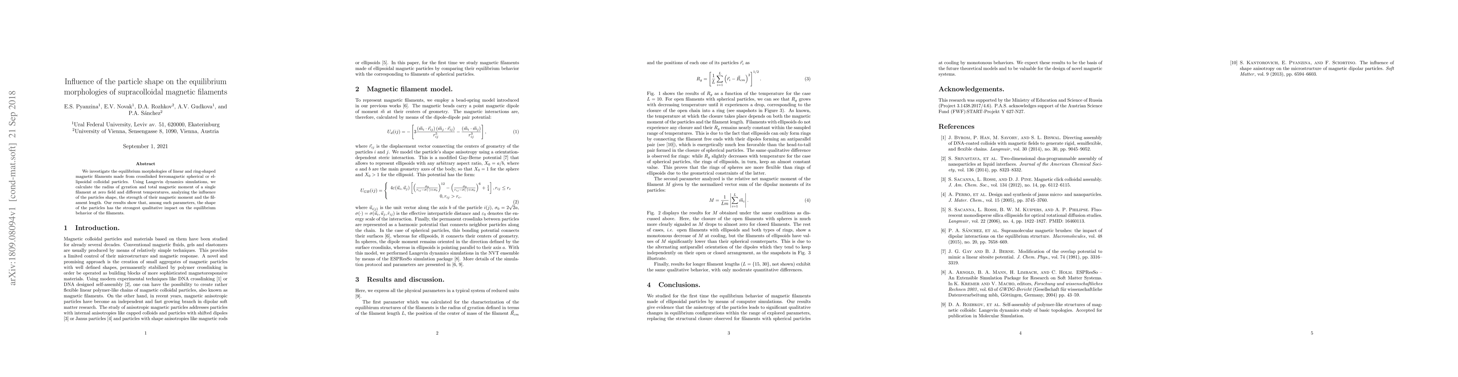 Researchers studied how different shapes of magnetic particles affect the shape of magnetic filaments at various temperatures, finding that particle shape has the strongest impact on filament behavior.