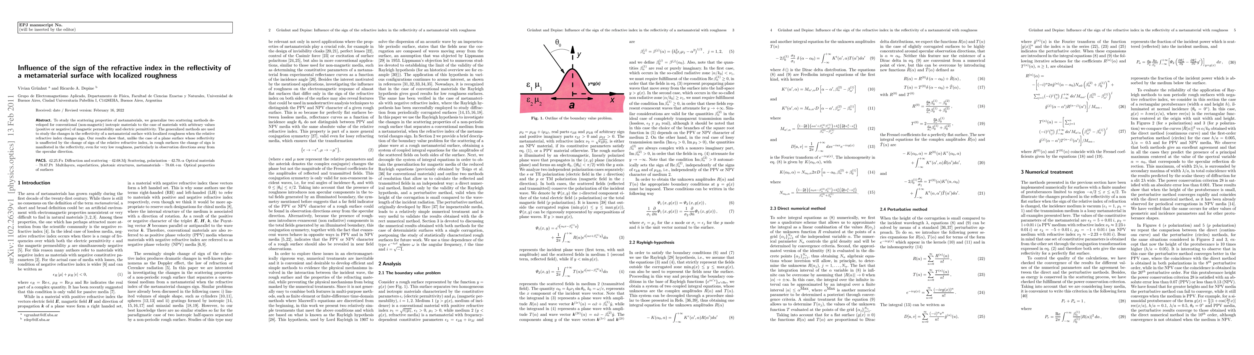 To study the scattering properties of metamaterials, we generalize two scattering methods developed for conventional (non-magnetic) isotropic materials to the case of materials with arbitrary values (positive or negative) of magnetic permeability and electric permittivity. The generalized methods are used to study the changes in the reflectivity of a metamaterial surface with localized roughness when the relative refractive index changes sign. Our results show that, unlike the case of a plane surface whose reflectivity is unaffected by the change of sign of the relative refractive index, in rough surfaces the change of sign is manifested in the reflectivity, even for very low roughness, particularly in observation directions away from the specular direction.