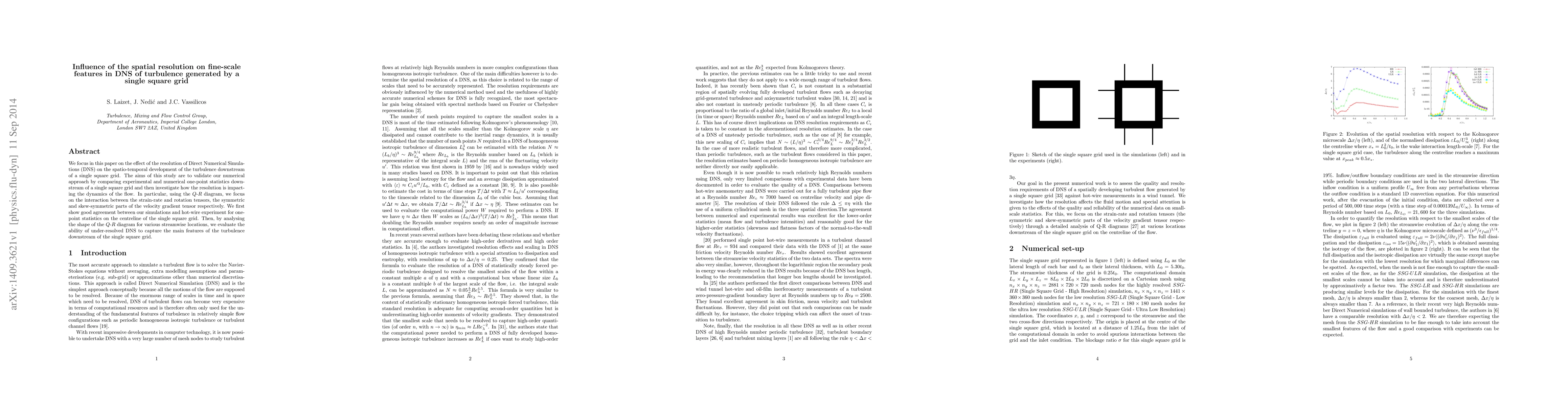 We focus in this paper on the effect of the resolution of Direct Numerical Simulations (DNS) on the spatio-temporal development of the turbulence downstream of a single square grid. The aims of this study are to validate our numerical approach by comparing experimental and numerical one-point statistics downstream of a single square grid and then investigate how the resolution is impacting the dynamics of the flow. In particular, using the Q-R diagram, we focus on the interaction between the strain-rate and rotation tensors, the symmetric and skew-symmetric parts of the velocity gradient tensor respectively. We first show good agreement between our simulations and hot-wire experiment for one-point statistics on the centreline of the single square grid. Then, by analysing the shape of the Q-R diagram for various streamwise locations, we evaluate the ability of under-resolved DNS to capture the main features of the turbulence downstream of the single square grid.