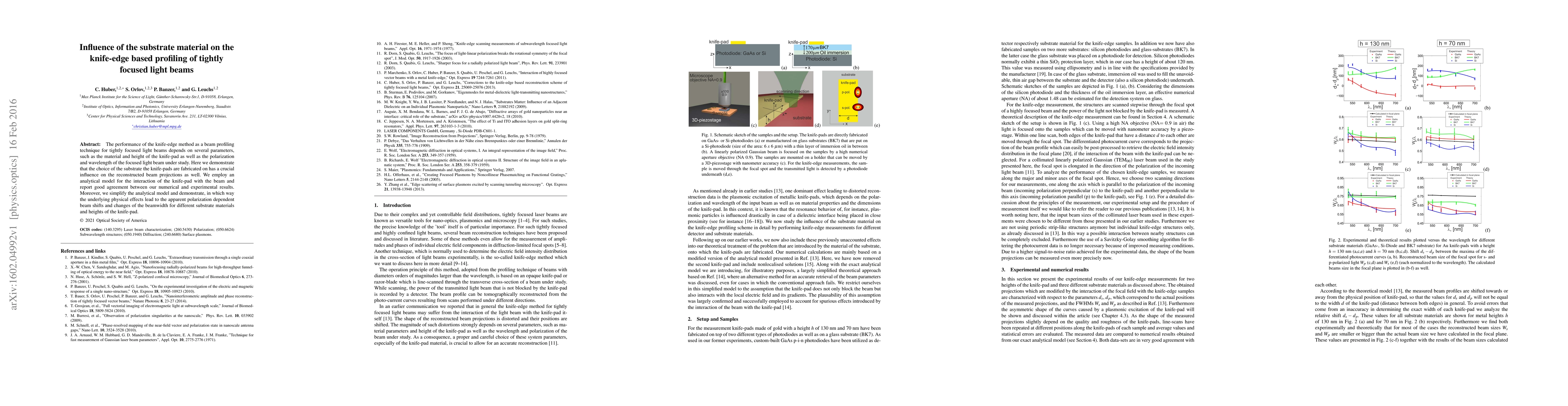 The performance of the knife-edge method as a beam profiling technique for tightly focused light beams depends on several parameters, such as the material and height of the knife-pad as well as the polarization and wavelength of the focused light beam under study. Here we demonstrate that the choice of the substrate the knife-pads are fabricated on has a crucial influence on the reconstructed beam projections as well. We employ an analytical model for the interaction of the knife-pad with the beam and report good agreement between our numerical and experimental results. Moreover, we simplify the analytical model and demonstrate, in which way the underlying physical effects lead to the apparent polarization dependent beam shifts and changes of the beamwidth for different substrate materials and heights of the knife-pad.