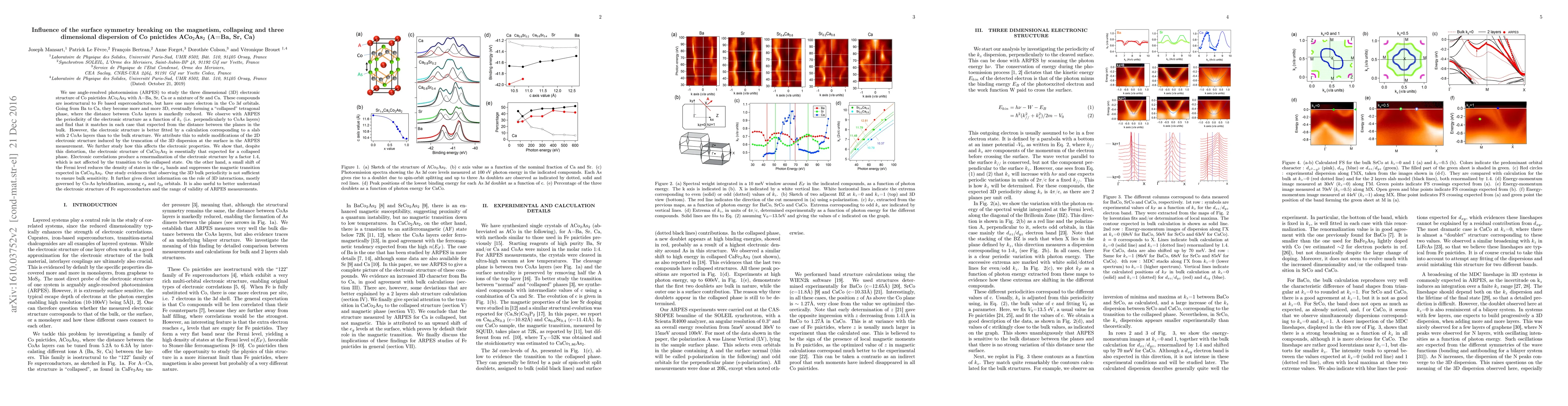 Researchers studied how surface symmetry breaking affects magnetism, dispersion, and electronic structure in Co pnictides ACo2As2, finding that electronic correlations play a key role despite surface distortions.