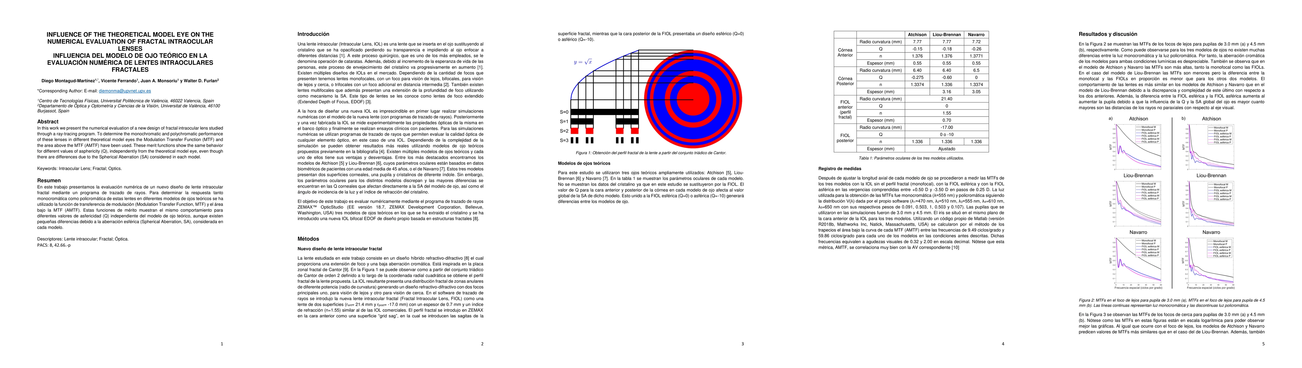 Researchers evaluated fractal intraocular lenses in various theoretical model eyes using Modulation Transfer Function (MTF) and area above MTF (AMTF), finding consistent performance across different models despite variations due to spherical aberration.