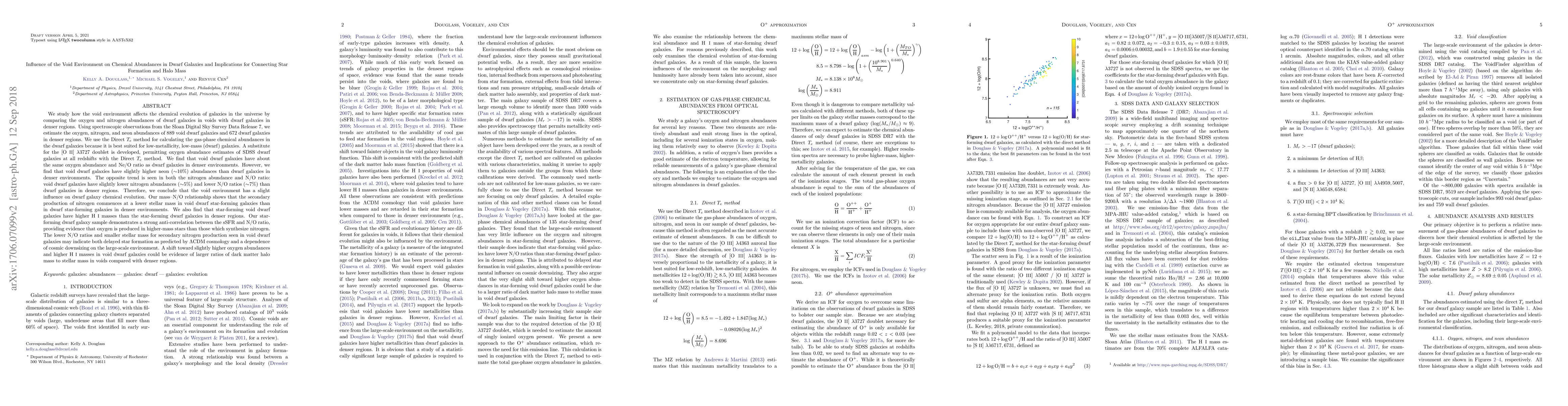 This paper investigates the chemical evolution of dwarf galaxies in void environments compared to those in denser regions, finding slight differences in oxygen, nitrogen, and neon abundances. The study concludes that the void environment influences chemical evolution, with implications for star formation and the relationship between stellar mass and dark matter halo mass.