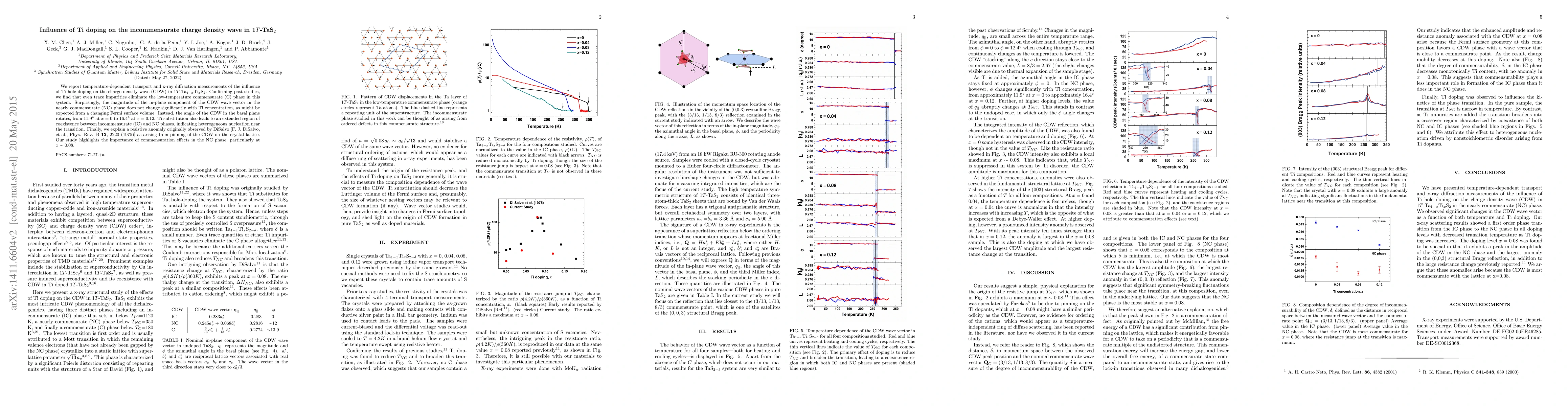 Ti doping affects the incommensurate charge density wave in 1T-TaS2 by rotating its angle in the basal plane and creating a coexistence region between phases, highlighting the importance of commensuration effects.