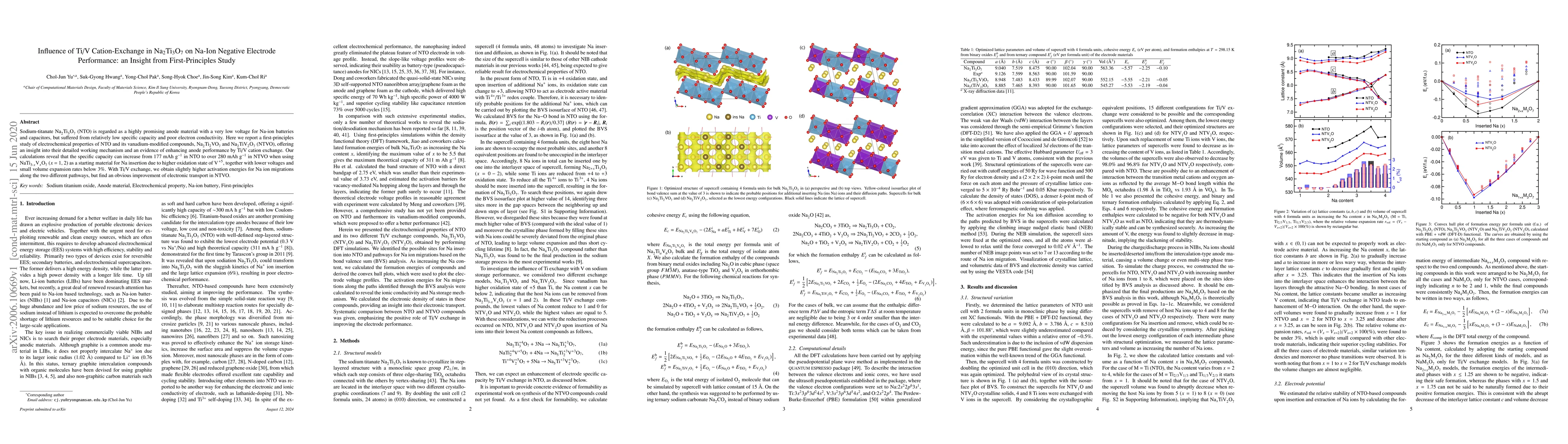 This study investigates the impact of Ti/V cation exchange in \ce{Na2Ti3O7} on Na-ion battery anode performance via first-principles calculations. The research shows that Ti/V exchange enhances specific capacity and electronic conductivity, improving overall electrochemical performance.