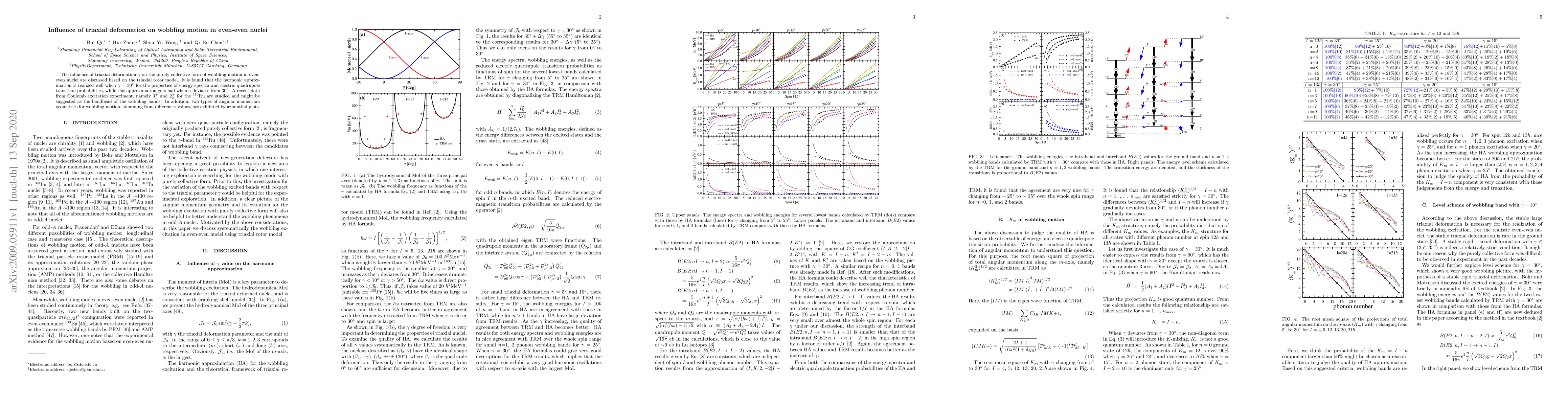 The influence of triaxial deformation $\gamma$ on the purely collective form of wobbling motion in even-even nuclei are discussed based on the triaxial rotor model. It is found that the harmonic approximation is realized well when $\gamma=30^{\circ}$ for the properties of energy spectra and electric quadrupole transition probabilities, while this approximation gets bad when $\gamma$ deviates from $30^{\circ}$. A recent data from Coulomb excitation experiment, namely $3_1^+$ and $2_2^+$ for the $^{110}$Ru are studied and might be suggested as the bandhead of the wobbling bands. In addition, two types of angular momentum geometries for wobbling motion, stemming from different $\gamma$ values, are exhibited by azimuthal plots.
