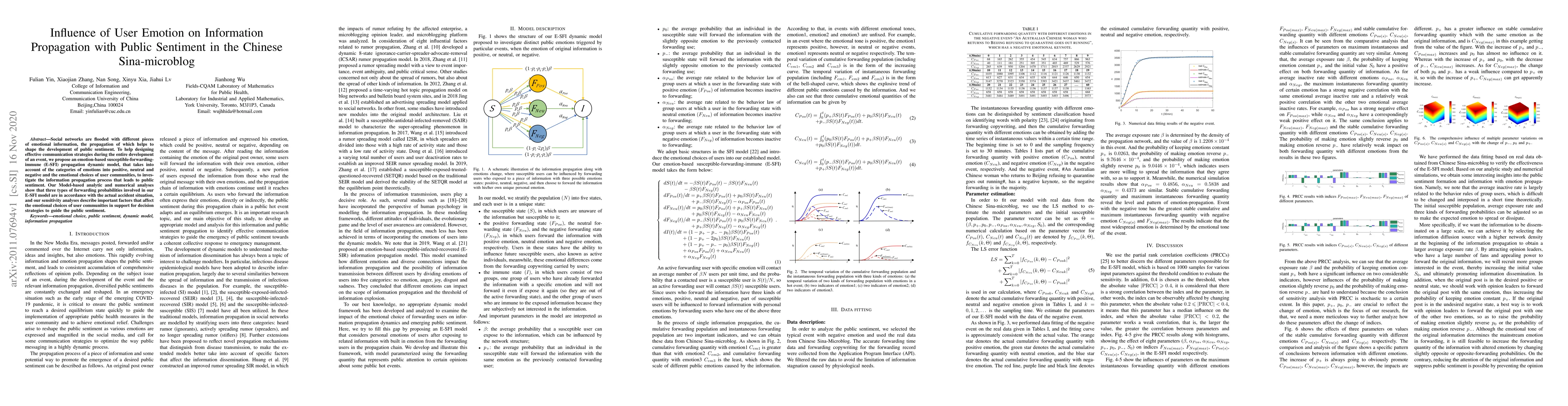 Social networks are flooded with different pieces of emotional information, the propagation of which helps to shape the development of public sentiment. To help designing effective communication strategies during the entire development of an event,we propose an emotion-based susceptible-forwarding-immune (E-SFI) propagation dynamic model, that takes into account of the categories of emotions into positive, neutral and negative and the emotional choices of user communities, to investigate the information propagation process that leads to public sentiment. Our Model-based analytic and numerical analyses show that three types of forwarding probabilities involved in our E-SFI model are in accordance with the actual accident situation, and our sensitivity analyses describe important factors that affect the emotional choices of user communities in support for decision strategies to guide the public sentiment.