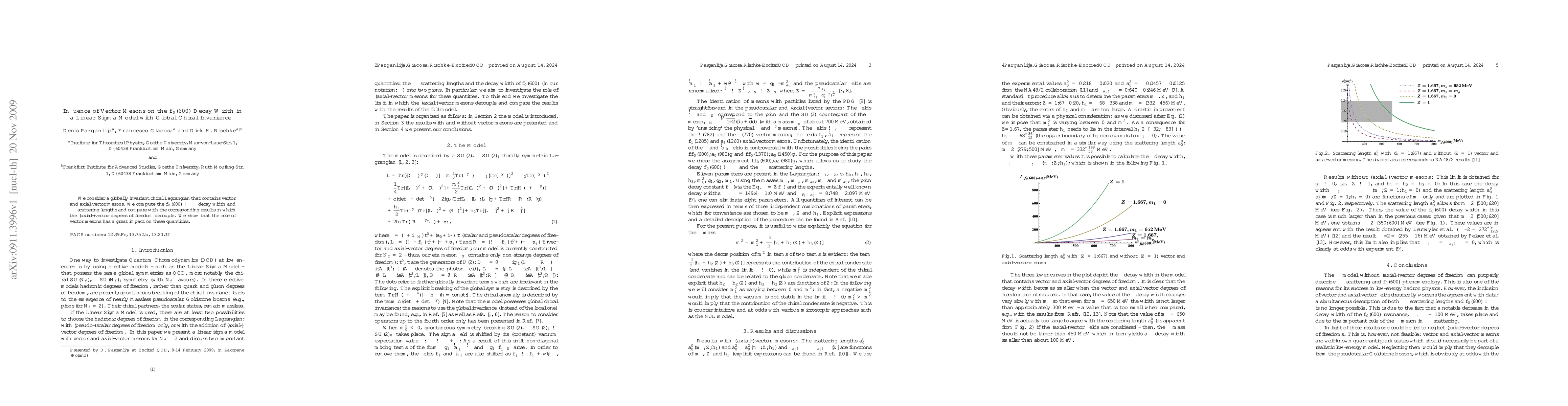 We consider a globally invariant chiral Lagrangian that contains vector and axial-vector mesons. We compute the f0(600) decay width into two pions and pion-pion scattering lengths and compare with the corresponding results in which the (axial-)vector degrees of freedom decouple. We show that the role of vector mesons has a great impact on these quantities.