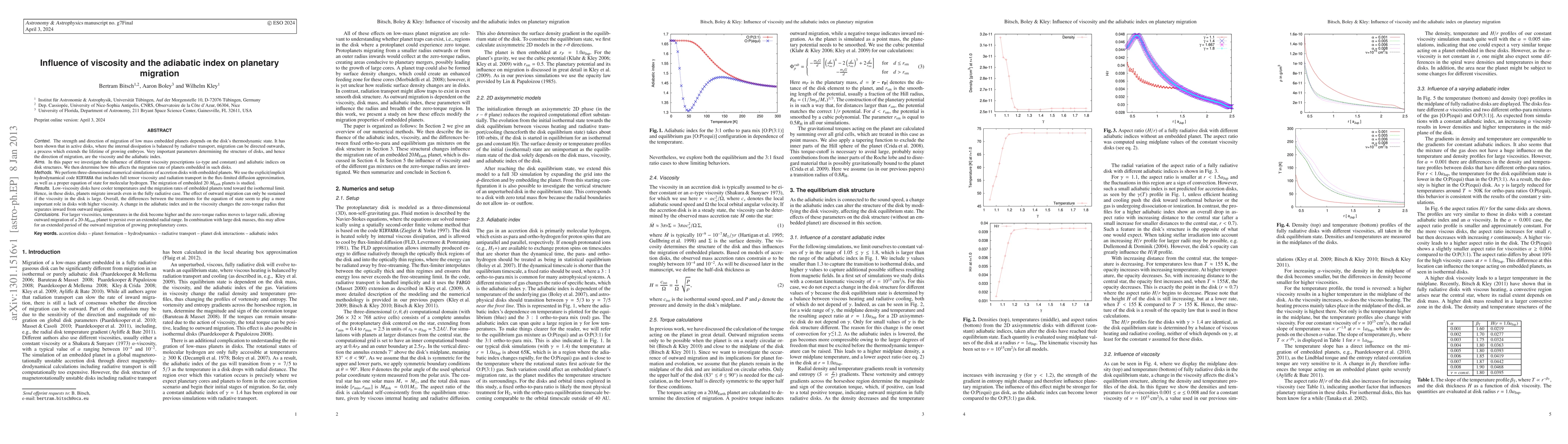 A numerical simulation was used to model planetary migration in a disk with varying viscosity and opacity.