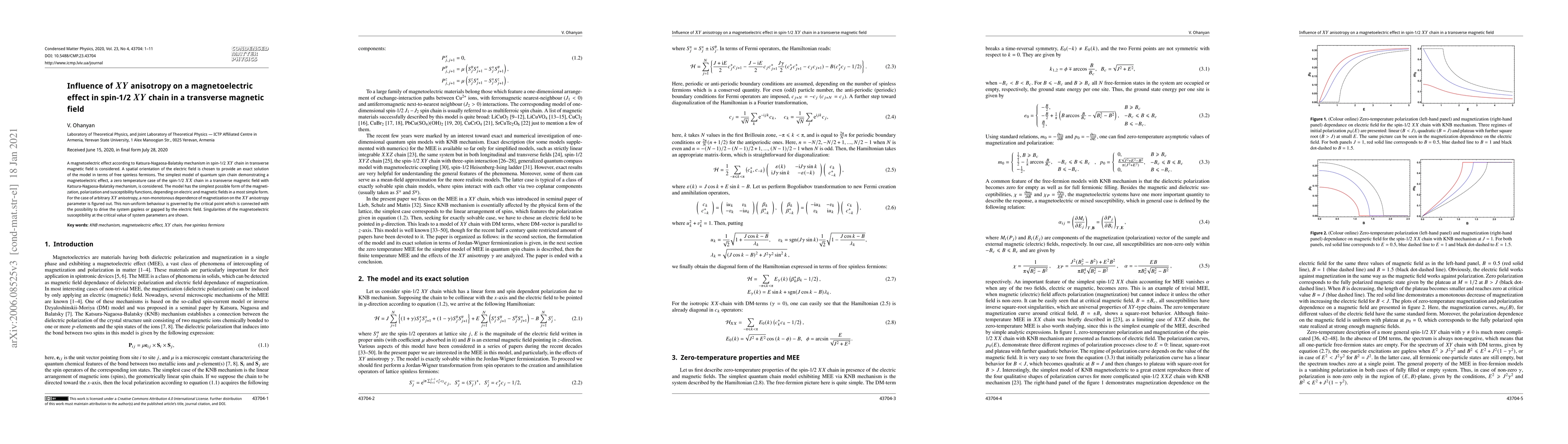 This paper investigates the magnetoelectric effect in a spin-1/2 XY chain under a transverse magnetic field, revealing non-monotonic magnetization behavior influenced by XY anisotropy. Critical points dictate the system's transition between gapless and gapped states, with singularities in magnetoelectric susceptibility emerging at these critical values.