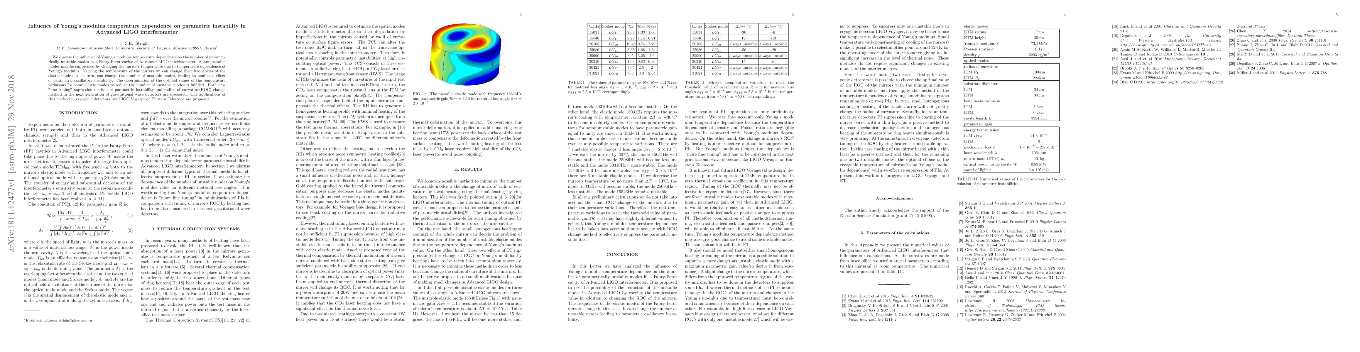This paper investigates how the temperature-dependent Young's modulus affects parametric instability in Advanced LIGO interferometers by altering the number of unstable modes in its Fabry-Perot cavity. It proposes temperature-based "fine tuning" to suppress instability and discusses its application in future gravitational wave detectors.