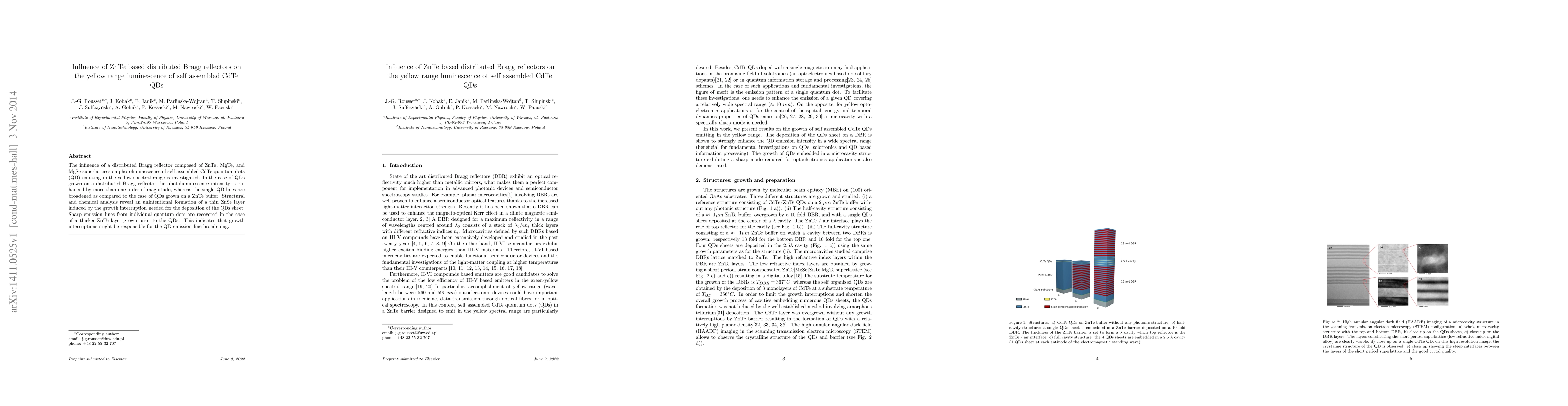 This study investigates how ZnTe-based distributed Bragg reflectors affect the yellow luminescence of self-assembled CdTe quantum dots, finding a significant enhancement in photoluminescence intensity but broadened emission lines due to growth interruptions. Thicker ZnTe layers before QD growth restore sharp emission lines.