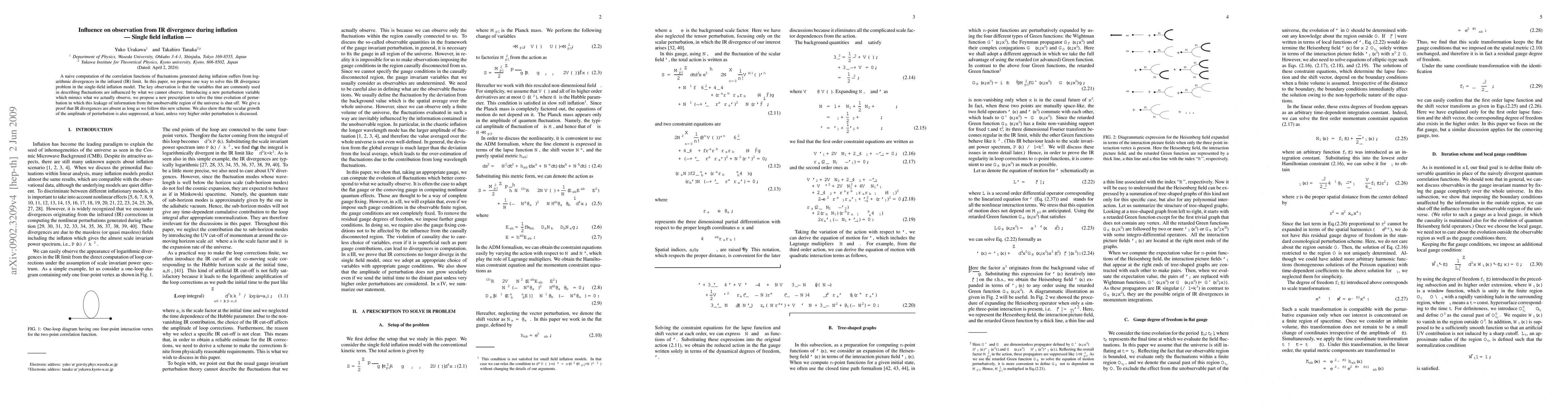 A naive computation of the correlation functions of fluctuations generated during inflation suffers from logarithmic divergences in the infrared (IR) limit. In this paper, we propose one way to solve this IR divergence problem in the single-field inflation model. The key observation is that the variables that are commonly used in describing fluctuations are influenced by what we cannot observe. Introducing a new perturbation variable which mimics what we actually observe, we propose a new prescription to solve the time evolution of perturbation in which this leakage of information from the unobservable region of the universe is shut off. We give a proof that IR divergences are absent as long as we follow this new scheme. We also show that the secular growth of the amplitude of perturbation is also suppressed, at least, unless very higher order perturbation is discussed.