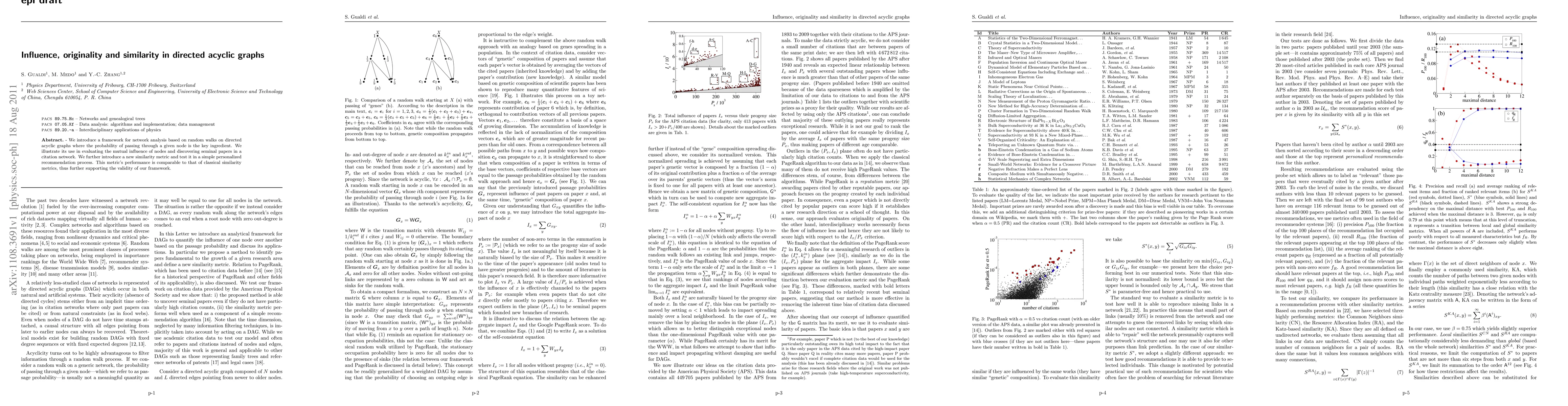 This paper introduces a framework for network analysis based on random walks in directed acyclic graphs to evaluate mutual influence and discover influential nodes in citation networks.