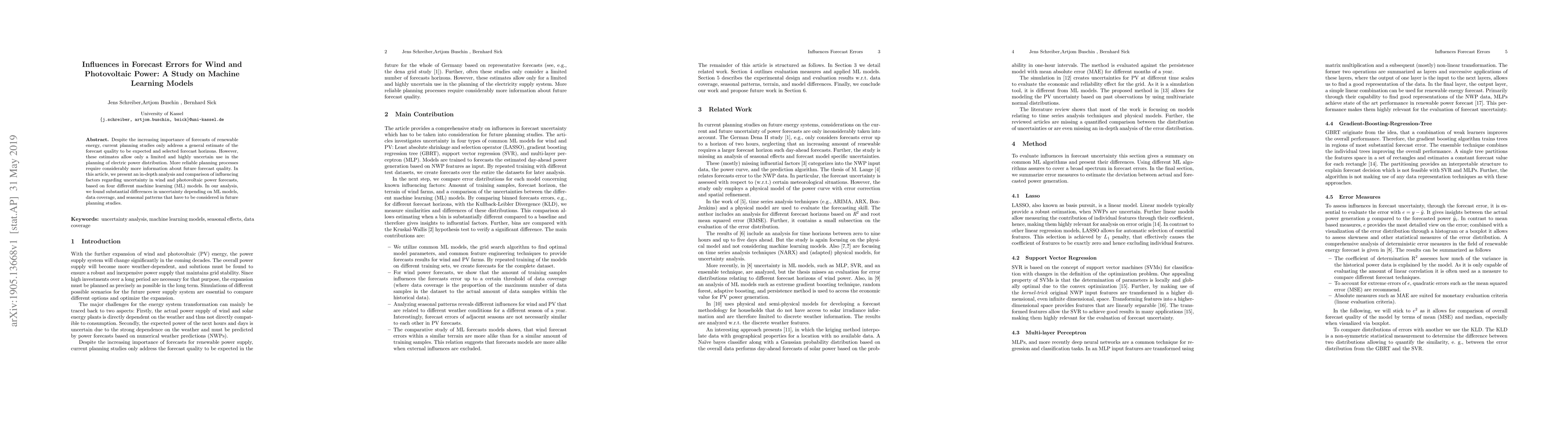 A study analyzed machine learning models to predict wind and photovoltaic power forecast errors, finding substantial differences in uncertainty based on data coverage and seasonal patterns, with implications for more reliable planning processes.