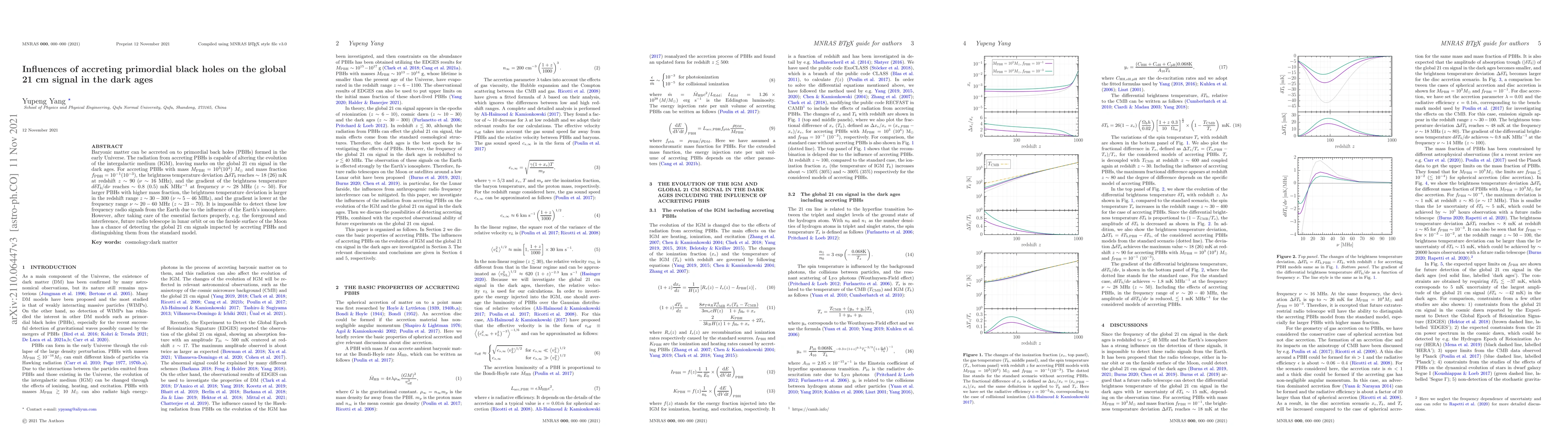 The research explores how accreting primordial black holes (PBHs) could influence the global 21 cm signal during the dark ages. For specific PBH masses and fractions, it predicts measurable changes in brightness temperature and its gradient. Despite Earth-based detection being hindered by the ionosphere, future lunar-based radio telescopes could potentially observe these altered signals, distinguishing them from standard models.