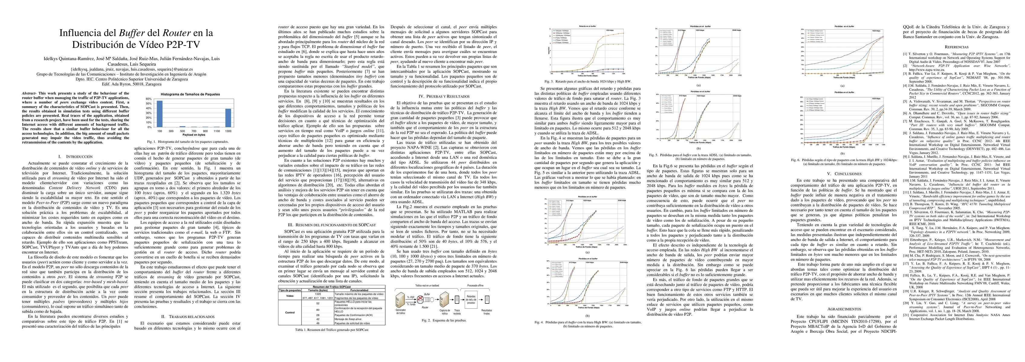 This work presents a study of the behaviour of the router buffer when managing the traffic of P2P-TV applications, where a number of peers exchange video content. First, a summary of the characteristics of SOPCast is presented. Then, the results obtained in simulation tests using different buffer policies are presented. Real traces of the application, obtained from a research project, have been used for the tests, sharing the Internet access with different amounts of background traffic. The results show that a similar buffer behaviour for all the access technologies. In addition, the big amount of small packets generated may impair the video traffic, thus avoiding the retransmission of the contents by the application.