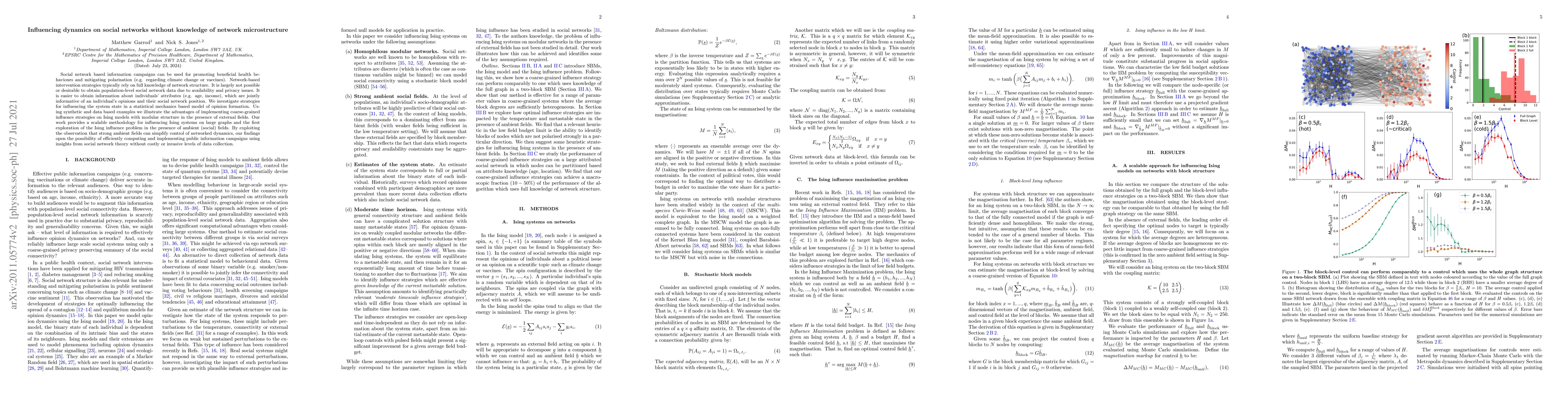 Researchers developed a method to influence social networks without knowing their underlying structure, enabling more efficient public information campaigns. This approach uses coarse-grained influence strategies to simplify control of networked dynamics in the presence of strong ambient fields.