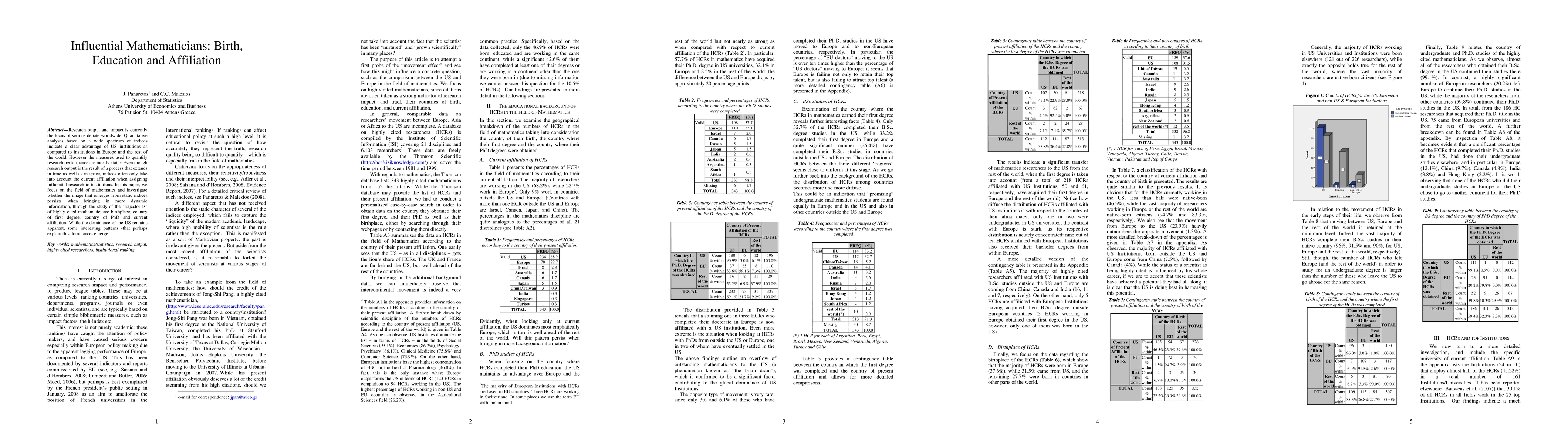This paper examines the research output and impact of influential mathematicians, analyzing their birthplace, first degree, PhD country, and current affiliation to assess whether static indices accurately reflect their contributions. Despite the continued dominance of US institutions, dynamic factors reveal intriguing patterns that may explain this dominance.