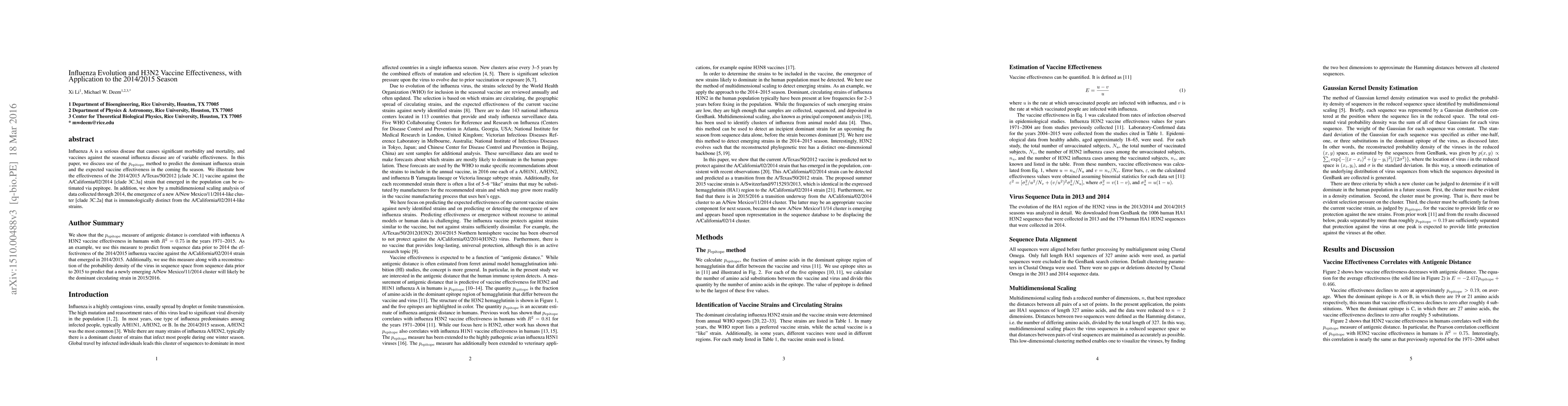 This paper employs the $p_{\rm epitope}$ method to predict the dominant influenza strain and vaccine effectiveness for the 2014/2015 season, demonstrating its application in estimating the efficacy of the A/Texas/50/2012 vaccine against the emerging A/California/02/2014 strain, and identifying a new immunologically distinct A/New Mexico/11/2014-like cluster.