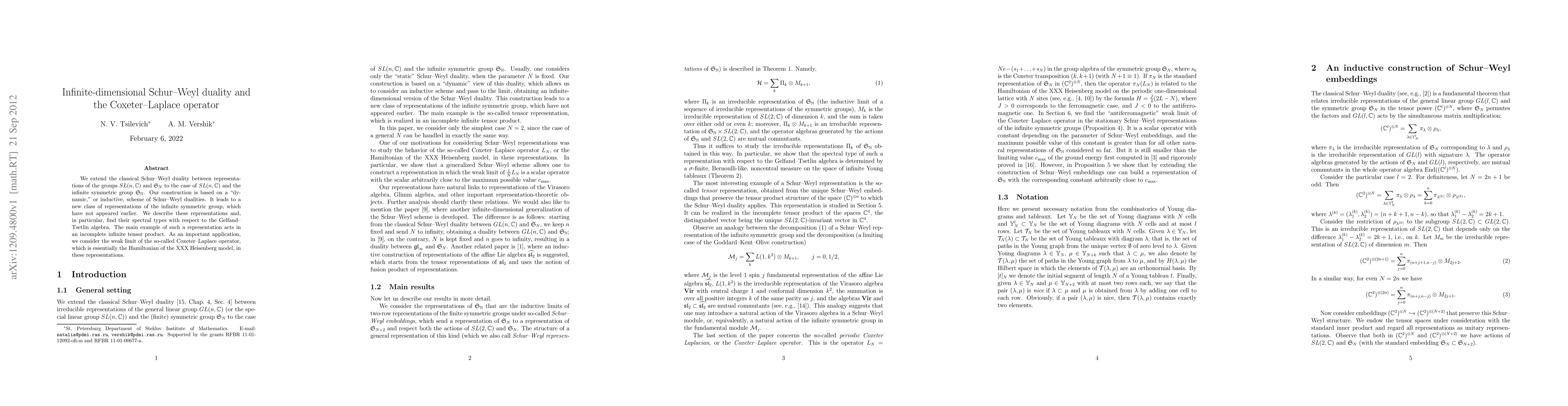 Researchers extend Schur-Weyl duality to infinite-dimensional representations of $SL(n,υ)$ and $Ωα$, leading to new classes of representations with unique spectral types. The work has implications for the study of the Coxeter-Laplace operator in these representations.