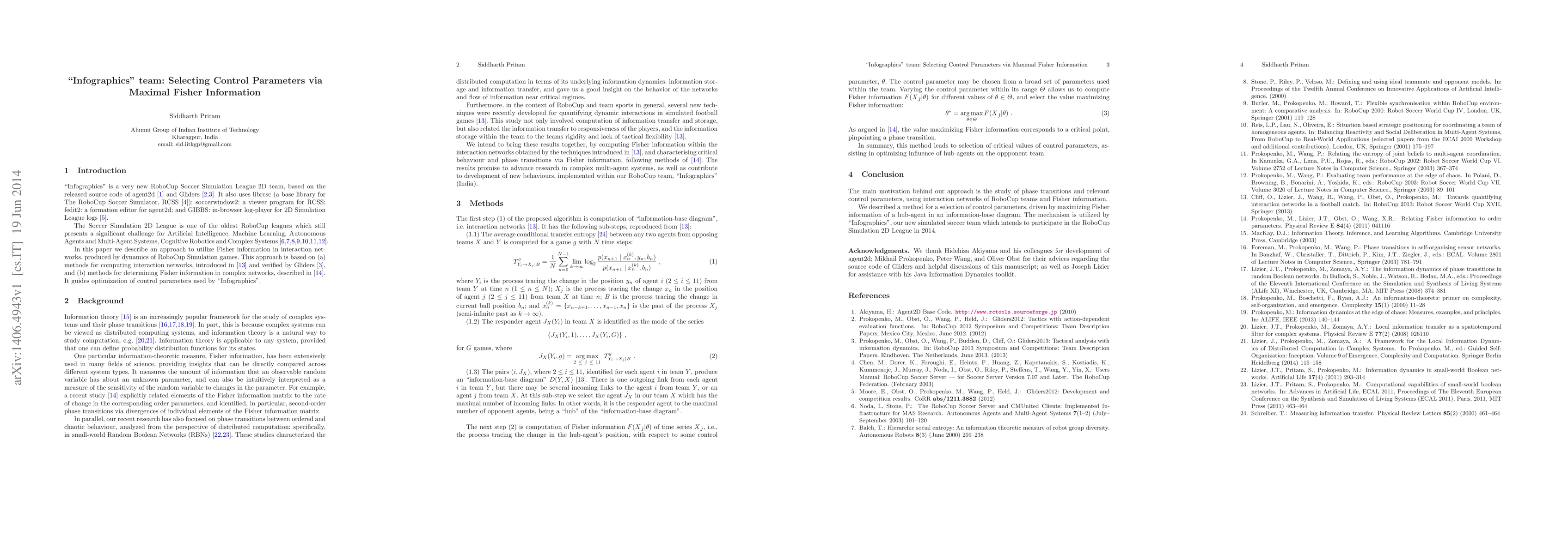 Team description paper for RoboCup 2014 Soccer Simulation League 2D.