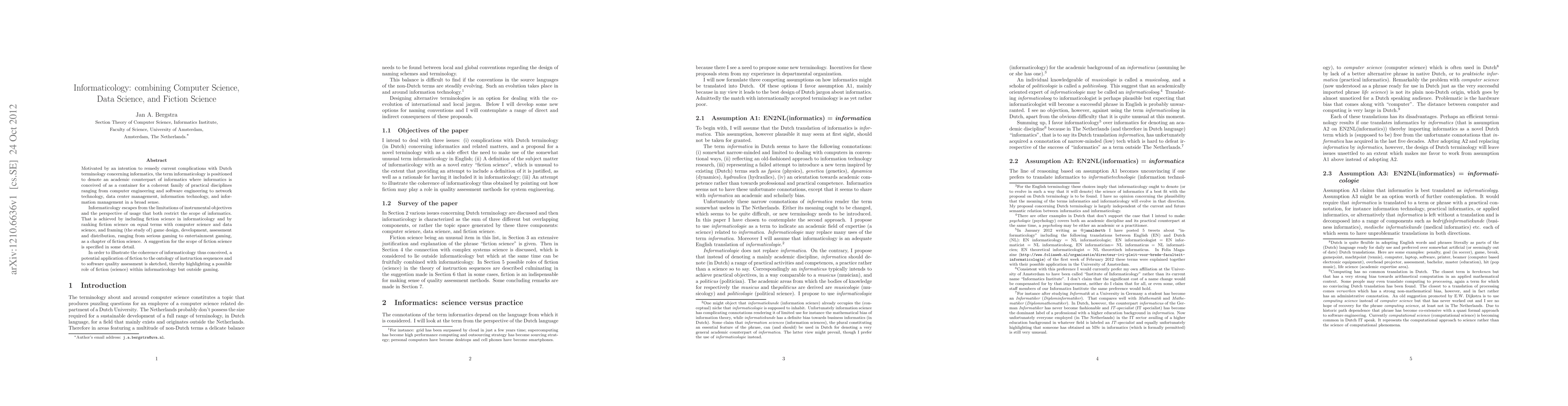 This paper introduces "informaticology" as an academic discipline encompassing computer science, data science, and fiction science, aiming to broaden the scope of informatics beyond practical applications. It proposes fiction science as an equal partner, suggesting its potential role in software quality assessment and instructional sequence ontology.