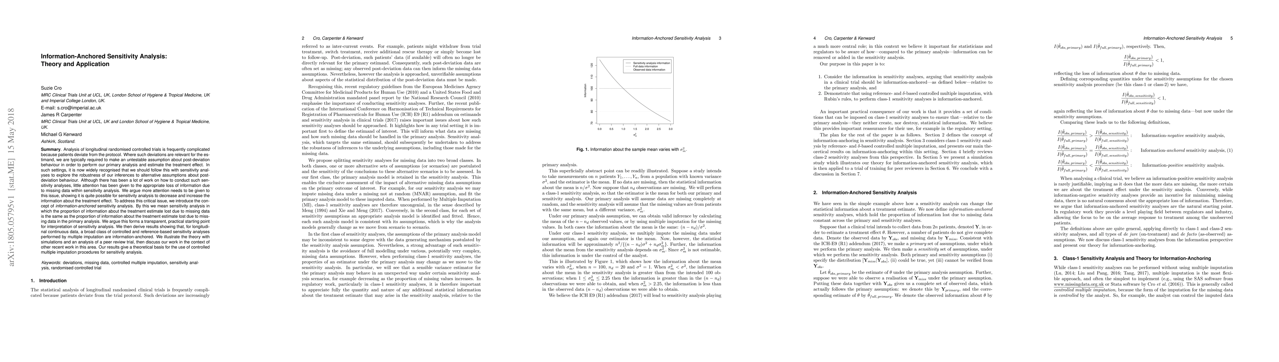 Analysis of longitudinal randomised controlled trials is frequently complicated because patients deviate from the protocol. Where such deviations are relevant for the estimand, we are typically required to make an untestable assumption about post-deviation behaviour in order to perform our primary analysis and estimate the treatment effect. In such settings, it is now widely recognised that we should follow this with sensitivity analyses to explore the robustness of our inferences to alternative assumptions about post-deviation behaviour. Although there has been a lot of work on how to conduct such sensitivity analyses, little attention has been given to the appropriate loss of information due to missing data within sensitivity analysis. We argue more attention needs to be given to this issue, showing it is quite possible for sensitivity analysis to decrease and increase the information about the treatment effect. To address this critical issue, we introduce the concept of information-anchored sensitivity analysis. By this we mean sensitivity analysis in which the proportion of information about the treatment estimate lost due to missing data is the same as the proportion of information about the treatment estimate lost due to missing data in the primary analysis. We argue this forms a transparent, practical starting point for interpretation of sensitivity analysis. We then derive results showing that, for longitudinal continuous data, a broad class of controlled and reference-based sensitivity analyses performed by multiple imputation are information-anchored. We illustrate the theory with simulations and an analysis of a peer review trial, then discuss our work in the context of other recent work in this area. Our results give a theoretical basis for the use of controlled multiple imputation procedures for sensitivity analysis.
