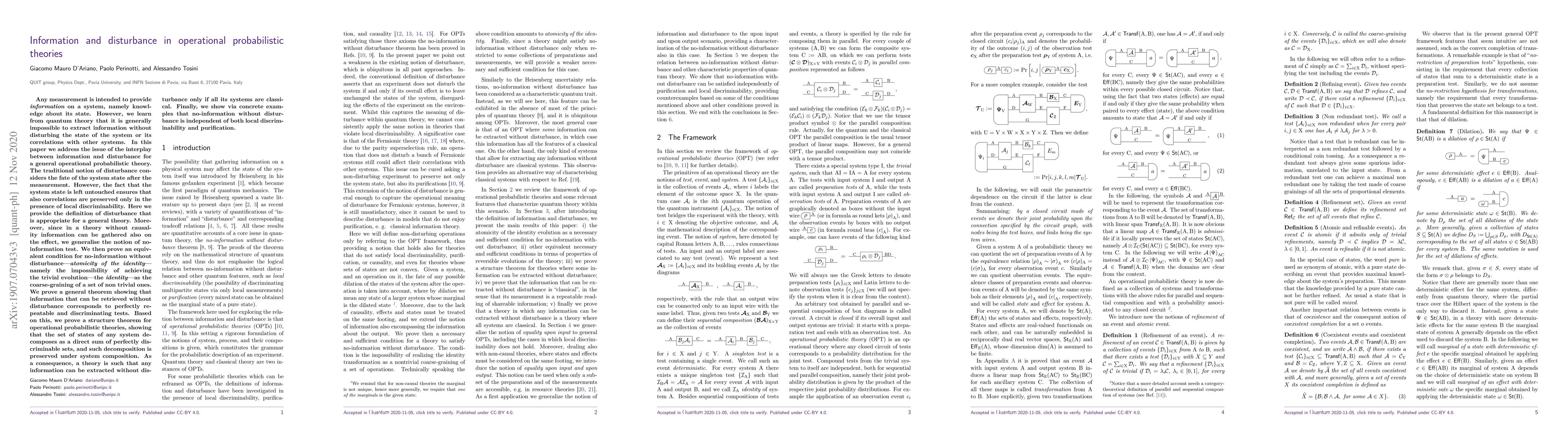 This paper explores the relationship between information extraction and disturbance in operational probabilistic theories, defining a general notion of disturbance that preserves correlations only under local discriminability. It proves that information retrieval without disturbance corresponds to perfectly repeatable tests and establishes a structure theorem for such theories, showing that systems decompose into perfectly discriminable sets, which is preserved under composition, concluding that only classical systems allow for information extraction without disturbance.