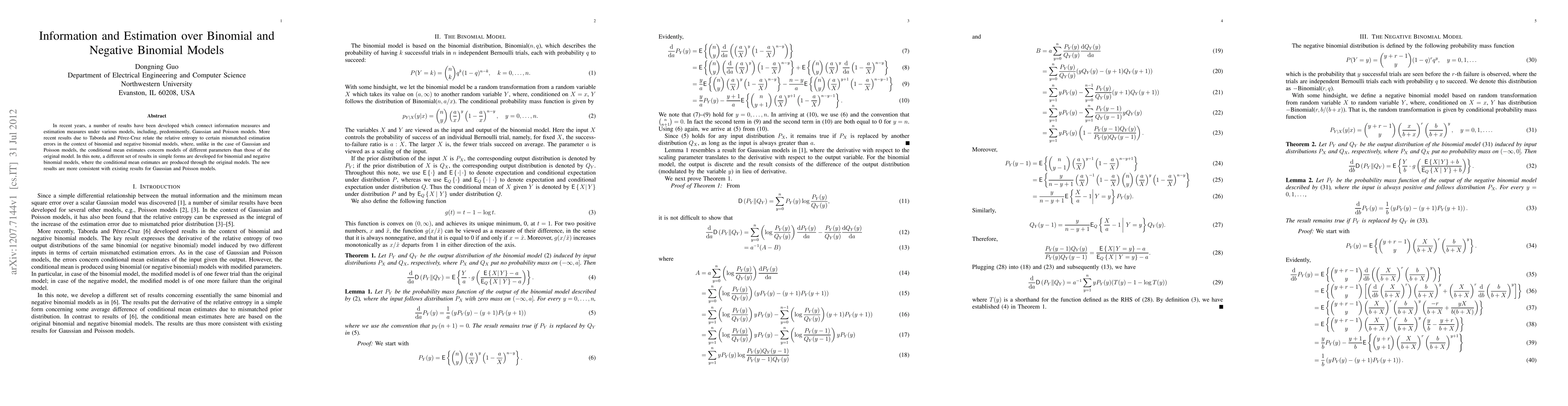 This paper develops new results relating information measures and estimation measures for binomial and negative binomial models, producing conditional mean estimates through the original models. These results align more closely with existing findings for Gaussian and Poisson models compared to previous mismatched estimation approaches.
