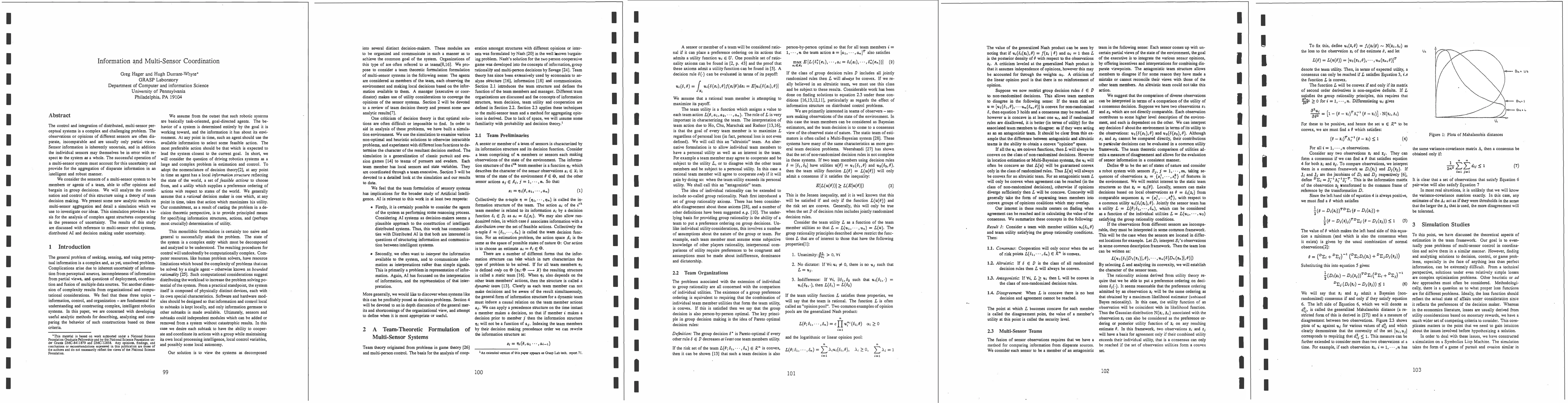 The control and integration of distributed, multi-sensor perceptual systems is a complex and challenging problem. The observations or opinions of different sensors are often disparate incomparable and are usually only partial views. Sensor information is inherently uncertain and in addition the individual sensors may themselves be in error with respect to the system as a whole. The successful operation of a multi-sensor system must account for this uncertainty and provide for the aggregation of disparate information in an intelligent and robust manner. We consider the sensors of a multi-sensor system to be members or agents of a team, able to offer opinions and bargain in group decisions. We will analyze the coordination and control of this structure using a theory of team decision-making. We present some new analytic results on multi-sensor aggregation and detail a simulation which we use to investigate our ideas. This simulation provides a basis for the analysis of complex agent structures cooperating in the presence of uncertainty. The results of this study are discussed with reference to multi-sensor robot systems, distributed Al and decision making under uncertainty.