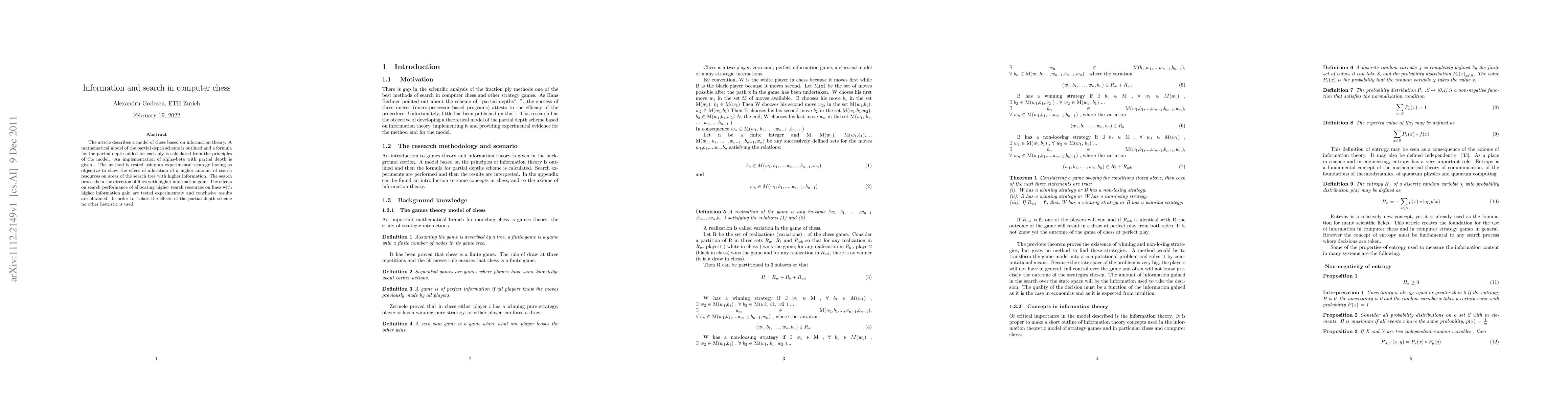 The article describes a model of chess based on information theory. A mathematical model of the partial depth scheme is outlined and a formula for the partial depth added for each ply is calculated from the principles of the model. An implementation of alpha-beta with partial depth is given. The method is tested using an experimental strategy having as objective to show the effect of allocation of a higher amount of search resources on areas of the search tree with higher information. The search proceeds in the direction of lines with higher information gain. The effects on search performance of allocating higher search resources on lines with higher information gain are tested experimentaly and conclusive results are obtained. In order to isolate the effects of the partial depth scheme no other heuristic is used.
