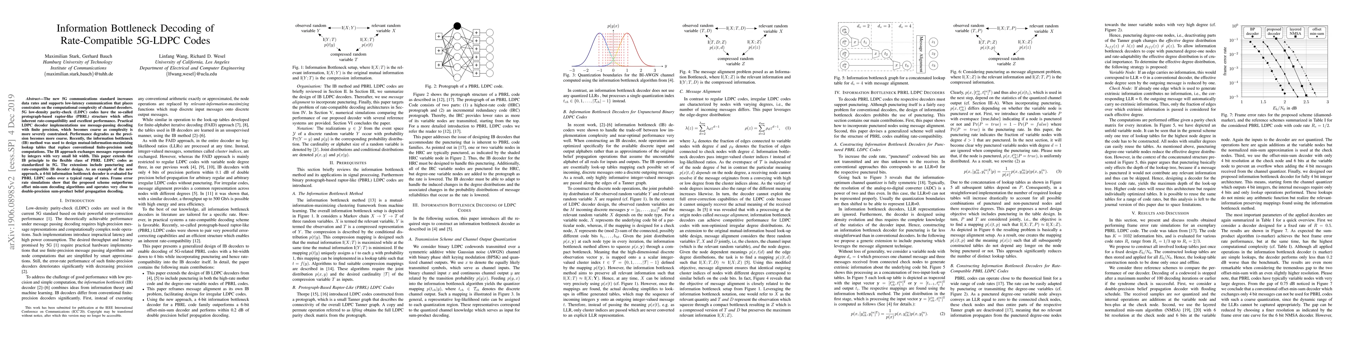 This paper proposes an information bottleneck decoding method for rate-compatible 5G LDPC codes, enhancing performance under computational constraints. The new 4-bit IB decoder outperforms existing algorithms and operates close to double-precision decoding, achieving better error rates.
