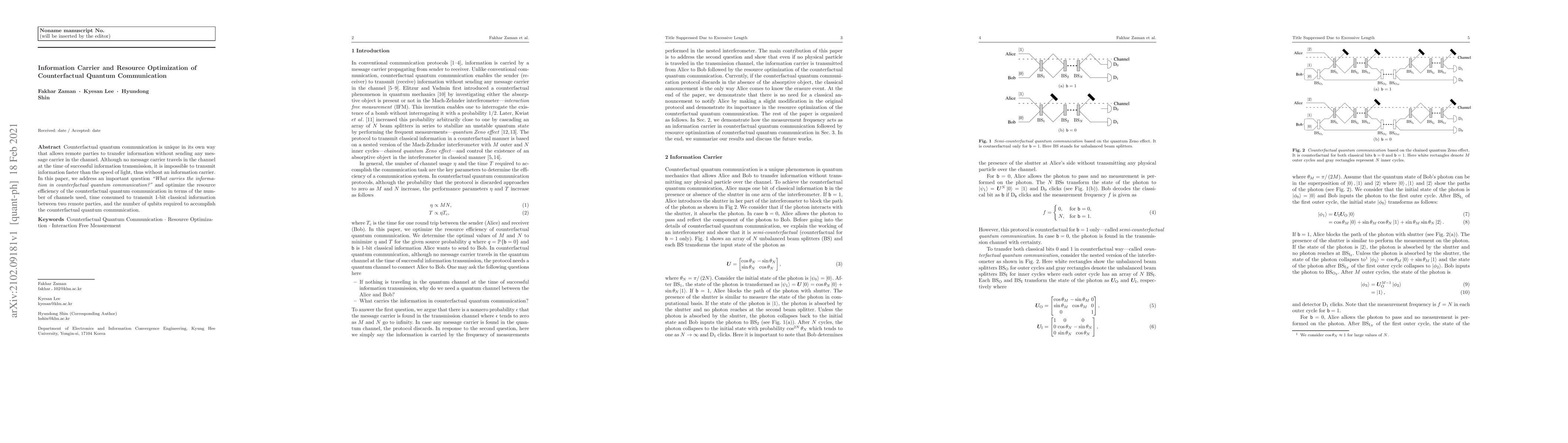 Researchers optimized counterfactual quantum communication for efficient information transfer, finding that a single qubit can convey 1-bit classical information between two parties without sending a message carrier, while minimizing channel usage and transmission time.
