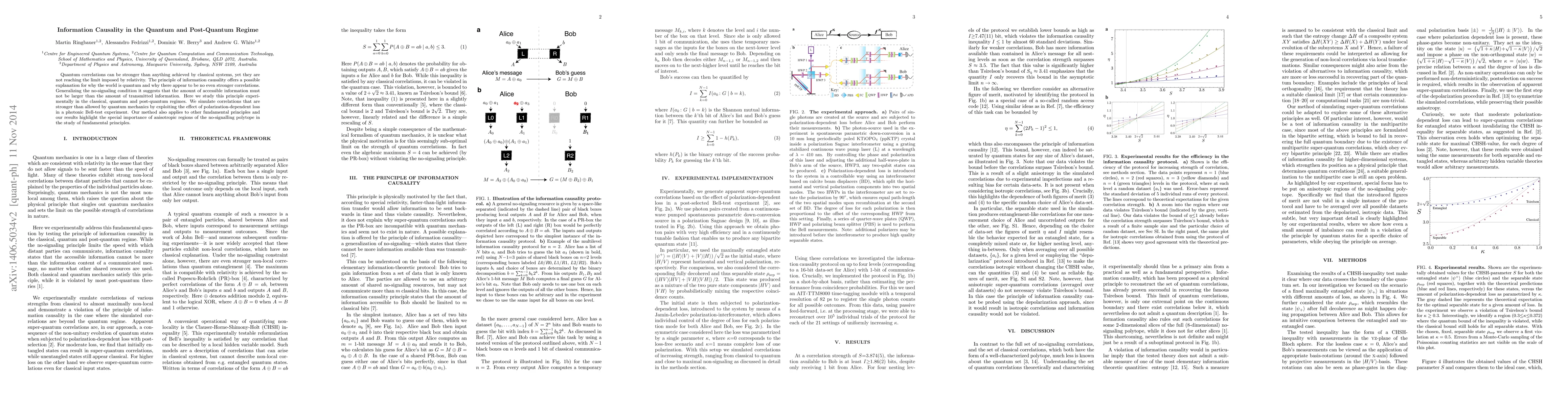 Quantum correlations can be stronger than anything achieved by classical systems, yet they are not reaching the limit imposed by relativity. The principle of information causality offers a possible explanation for why the world is quantum and why there appear to be no even stronger correlations. Generalizing the no-signaling condition it suggests that the amount of accessible information must not be larger than the amount of transmitted information. Here we study this principle experimentally in the classical, quantum and post-quantum regimes. We simulate correlations that are stronger than allowed by quantum mechanics by exploiting the effect of polarization-dependent loss in a photonic Bell-test experiment. Our method also applies to other fundamental principles and our results highlight the special importance of anisotropic regions of the no-signalling polytope in the study of fundamental principles.