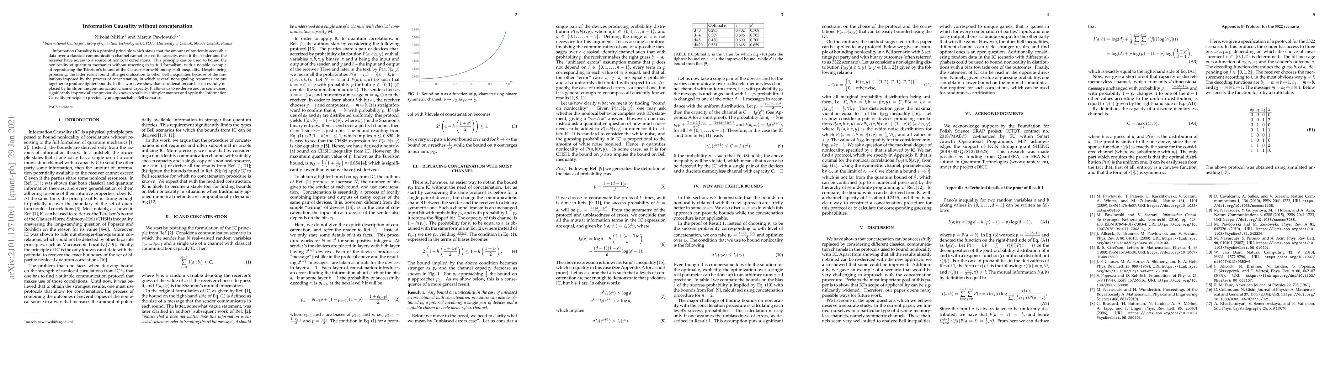 Researchers developed a new approach to apply the Information Causality principle, replacing concatenation with limits on communication channel capacity, allowing for more generalization of previously known results in quantum mechanics.