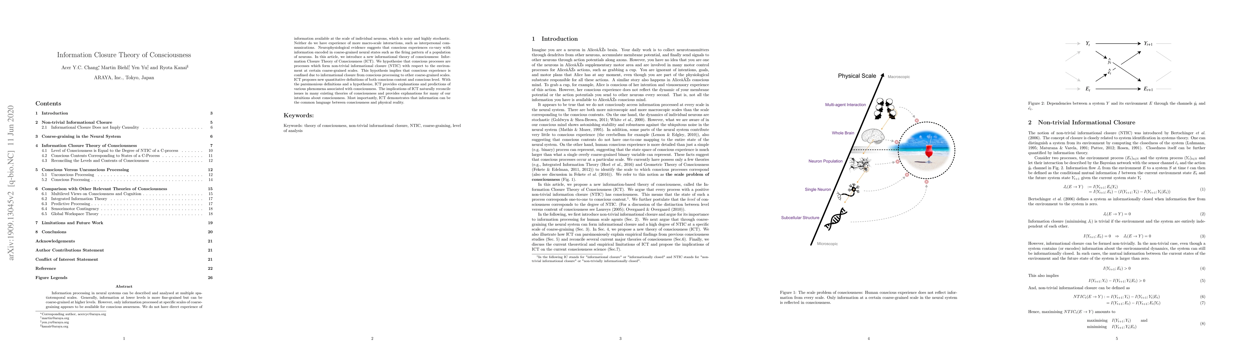 The Information Closure Theory of Consciousness (ICT) posits that conscious experiences arise from non-trivial informational closure at coarse-grained neural levels, providing a new quantitative framework for understanding conscious content and level, and reconciling issues in existing theories.