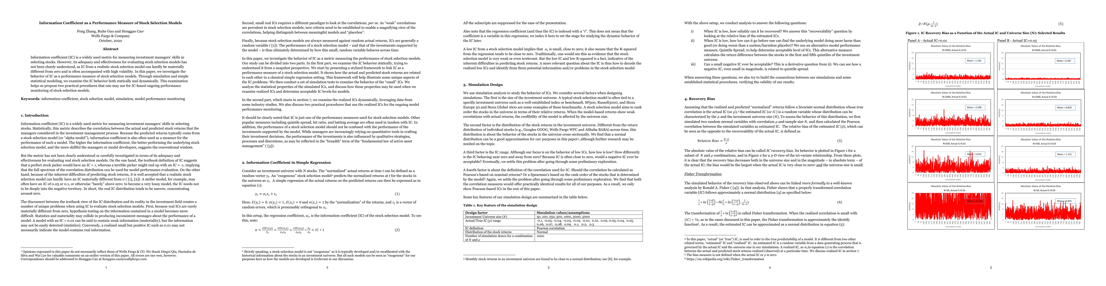 Researchers investigated the effectiveness of information coefficient as a performance measure for stock selection models, finding that it can produce low or zero returns with high volatility, and proposed two practical procedures to improve its monitoring.