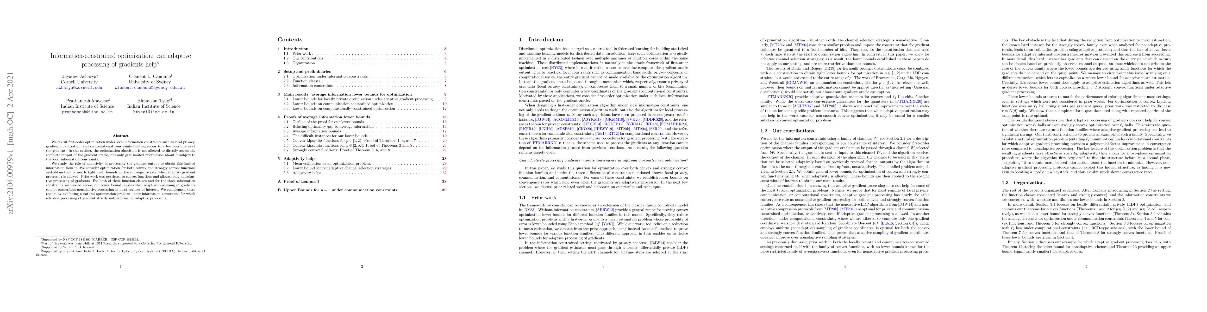 This research examines optimization under local information constraints like privacy and gradient quantization. It finds that adaptive gradient processing generally doesn't improve convergence rates for convex and strongly convex functions, contradicting prior assumptions. However, a specific optimization problem is identified where adaptive processing surpasses nonadaptive processing.