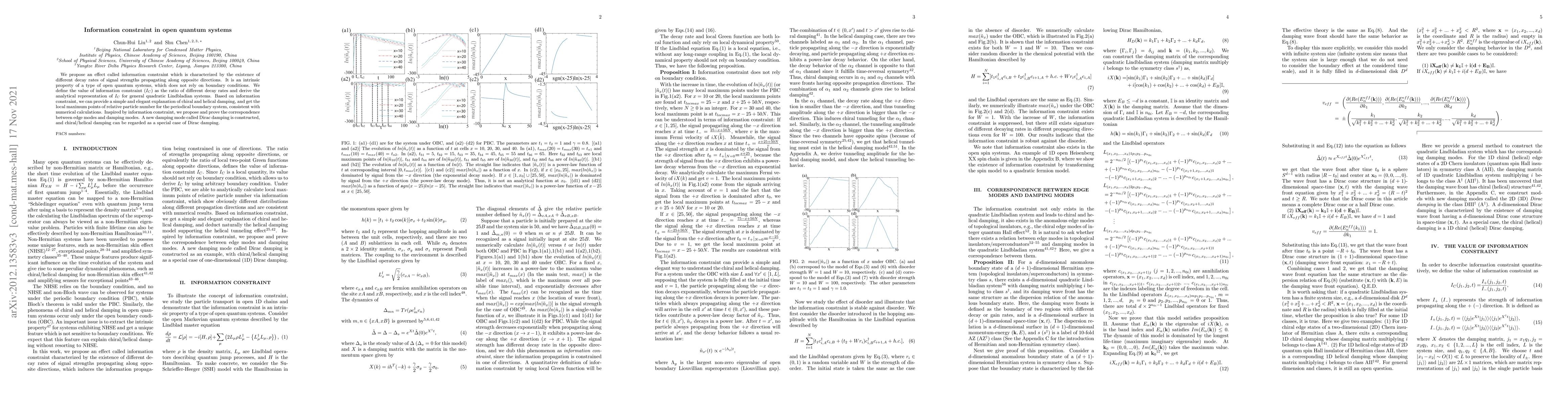 Researchers introduce a concept called information constraint in open quantum systems, which describes different decay rates of signal strengths along opposite directions. They derive an analytical representation for this constraint and propose a new damping mode, Dirac damping, that explains chiral and helical damping.