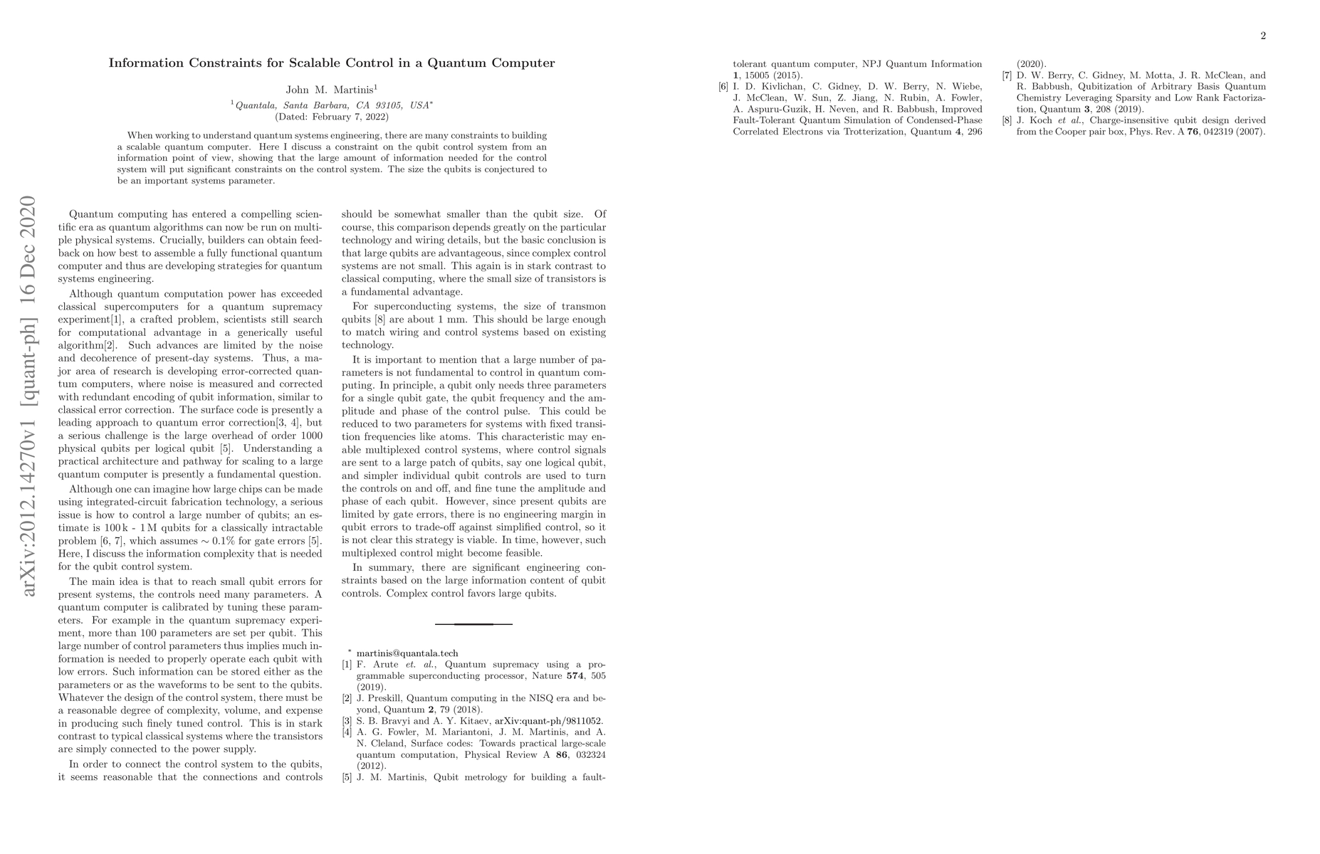 A study reveals that a large amount of information is needed for qubit control in quantum computers, which puts constraints on the system's size and scalability. The study suggests that the size of qubits is an important parameter in systems engineering.