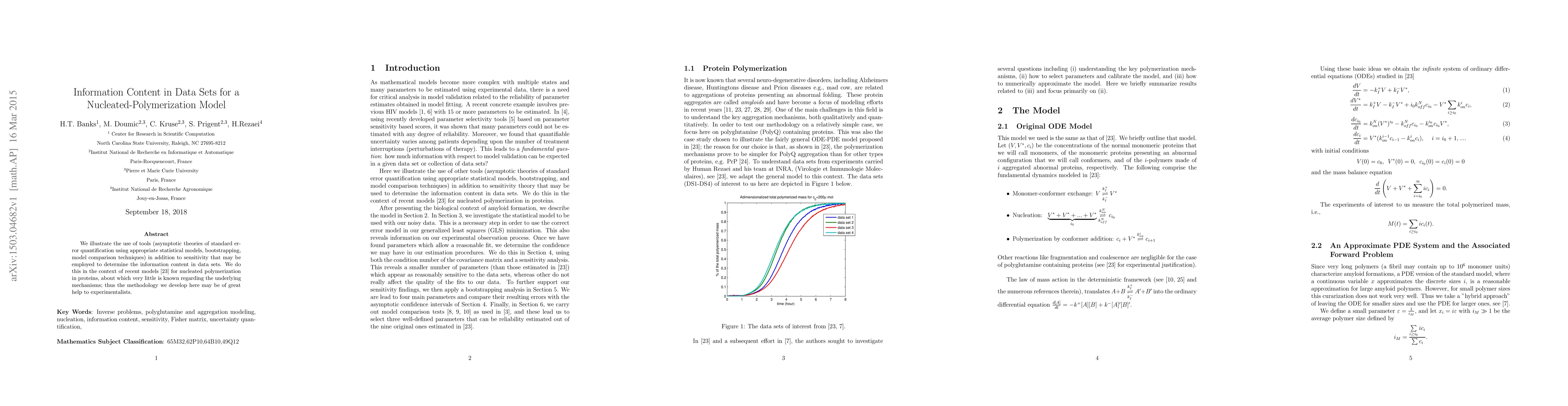 We illustrate the use of tools (asymptotic theories of standard error quantification using appropriate statistical models, bootstrapping, model comparison techniques) in addition to sensitivity that may be employed to determine the information content in data sets. We do this in the context of recent models [23] for nucleated polymerization in proteins, about which very little is known regarding the underlying mechanisms; thus the methodology we develop here may be of great help to experimentalists.